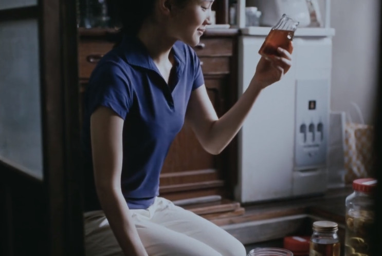 在姥姥的墓前,妈妈一直忏悔,临走的时候道歉,“对不起,没做个好女儿”。此时幸姐对母亲也改观了,没有什么过错是不可原谅的。于是回家为母亲装好梅子酒,此刻的特写也是很有意思的。小小的房间代表满满的心意,缓慢而小心的将酒灌好,拿起来闻了闻香味。光从窗外射进来,举起瓶子,透过温和的光看酒的成色,那分明是浸润在夏日阳光里的醇厚心意,此刻幸姐就释然了。