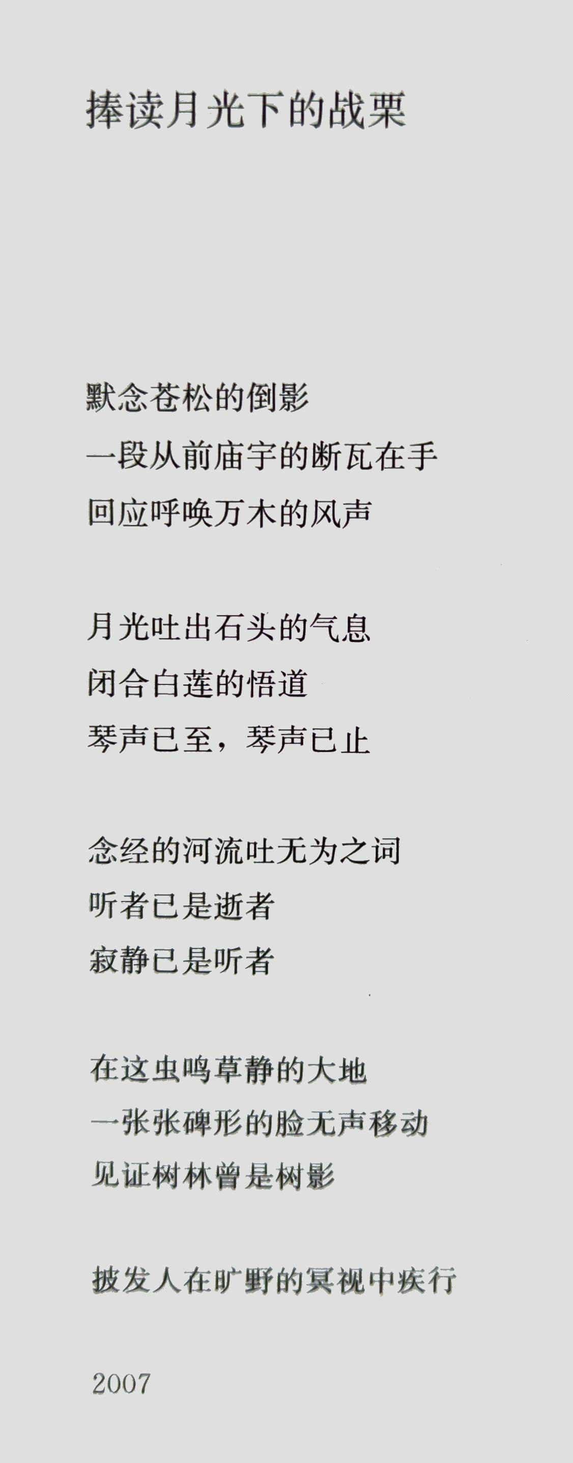 我很久没读到这么好的中文诗歌了,今天越读越感动,要强烈推荐一下。