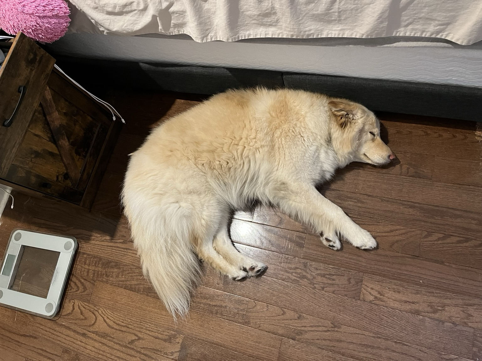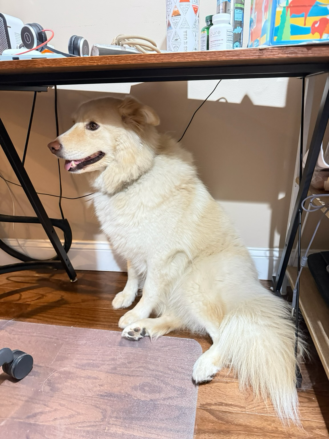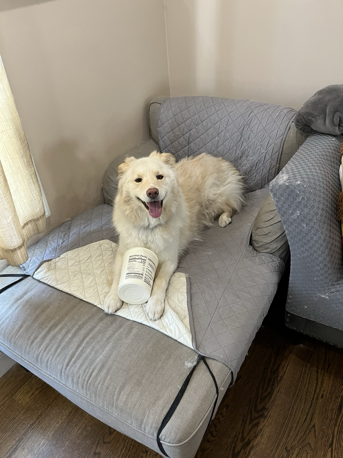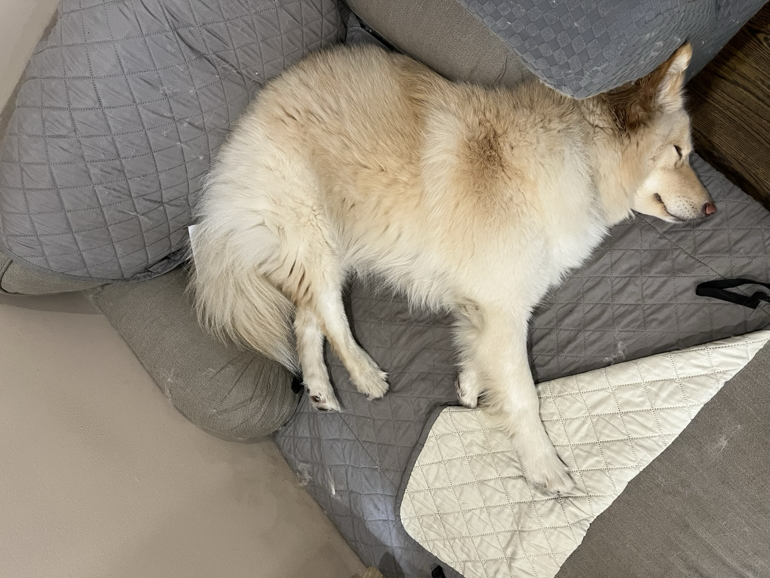 Even after some dramatic stomach issue, #今日Saffron still looks like she needs to lose some weight #dogsofmastodon #sundog