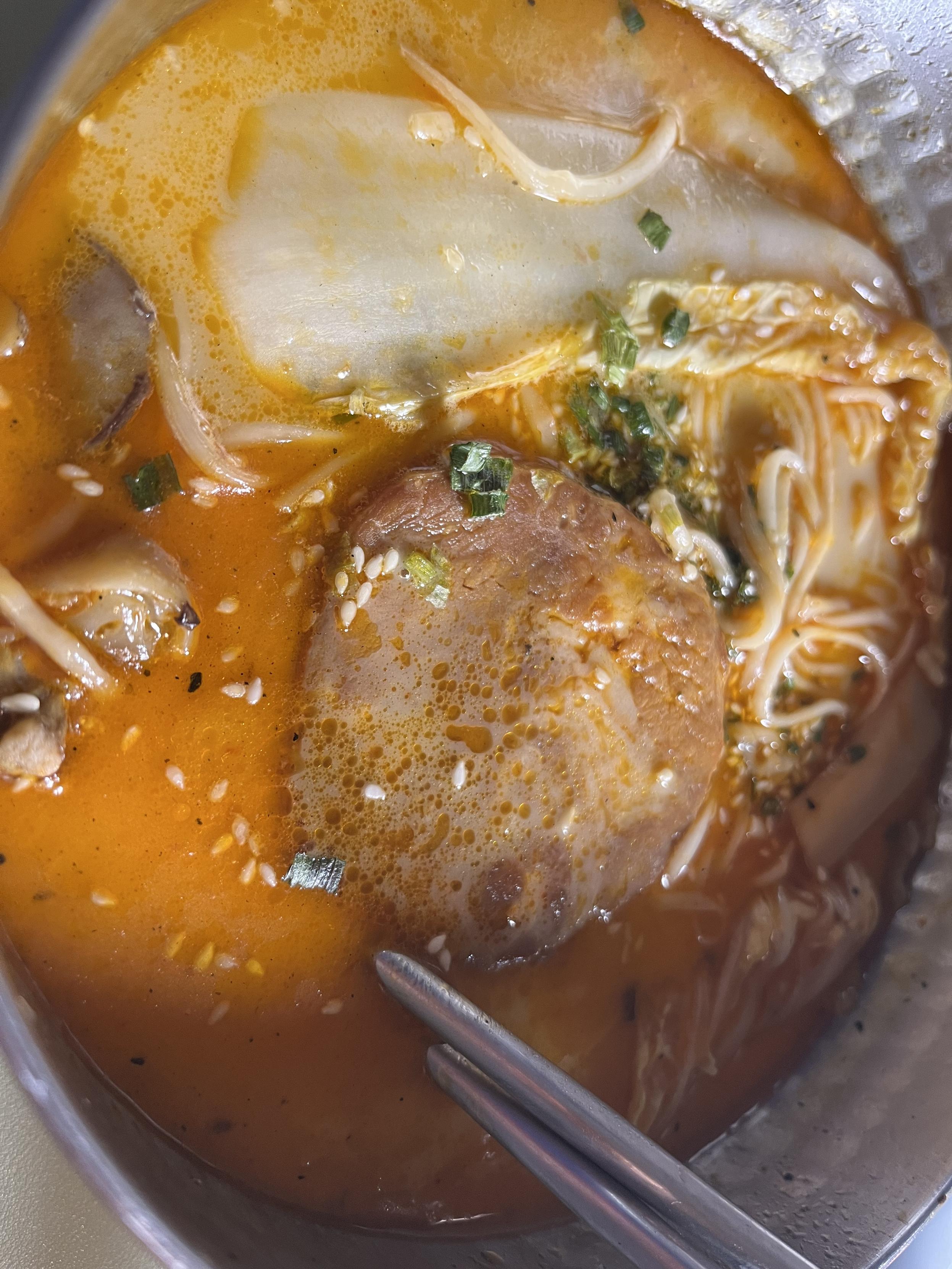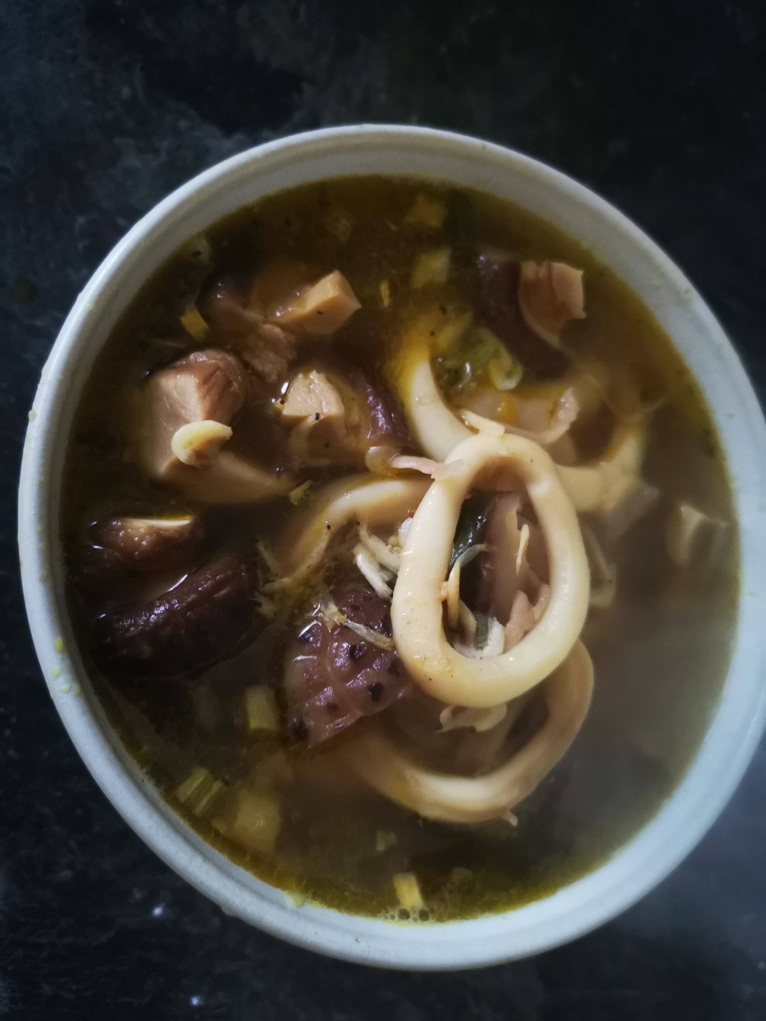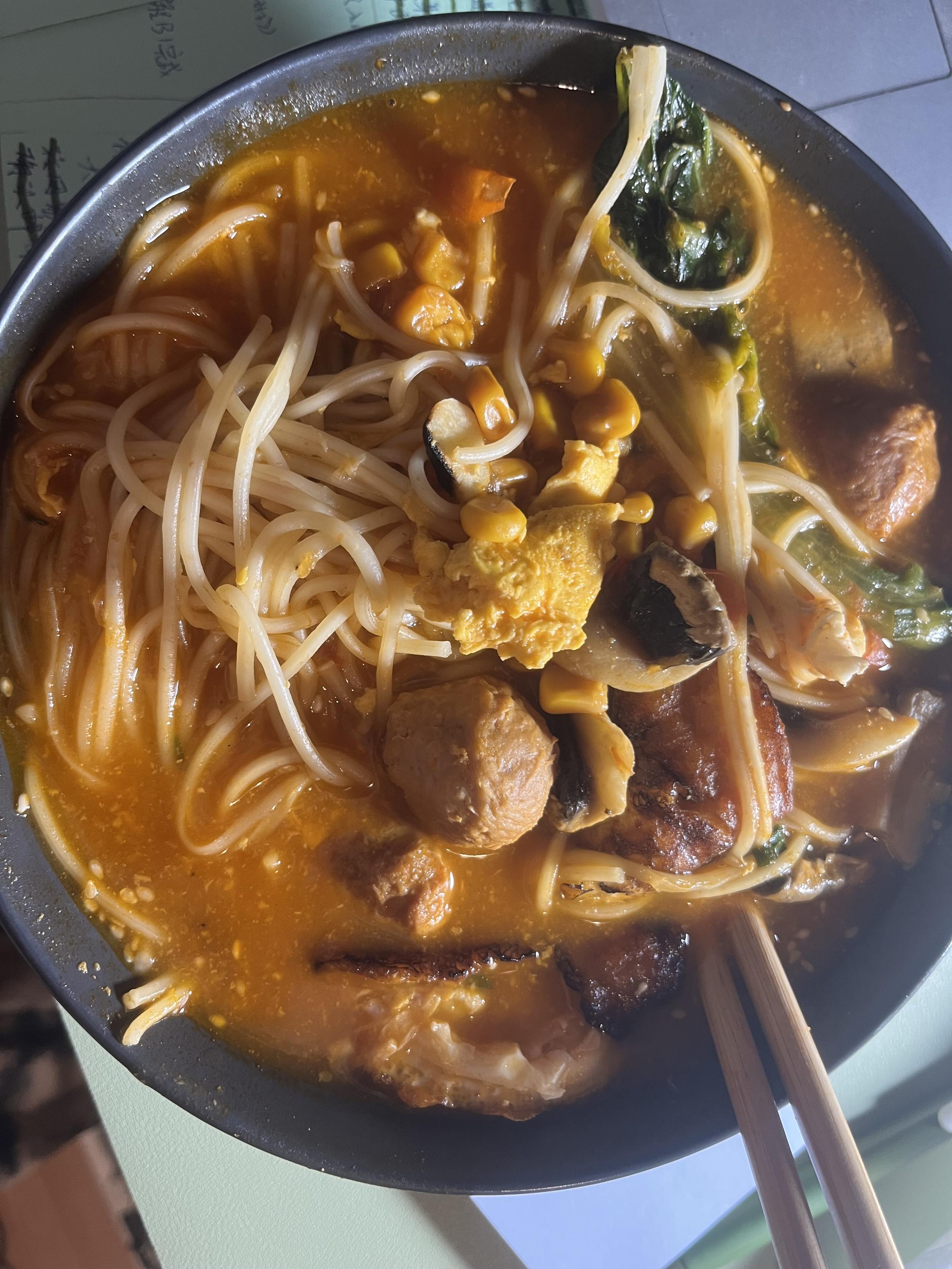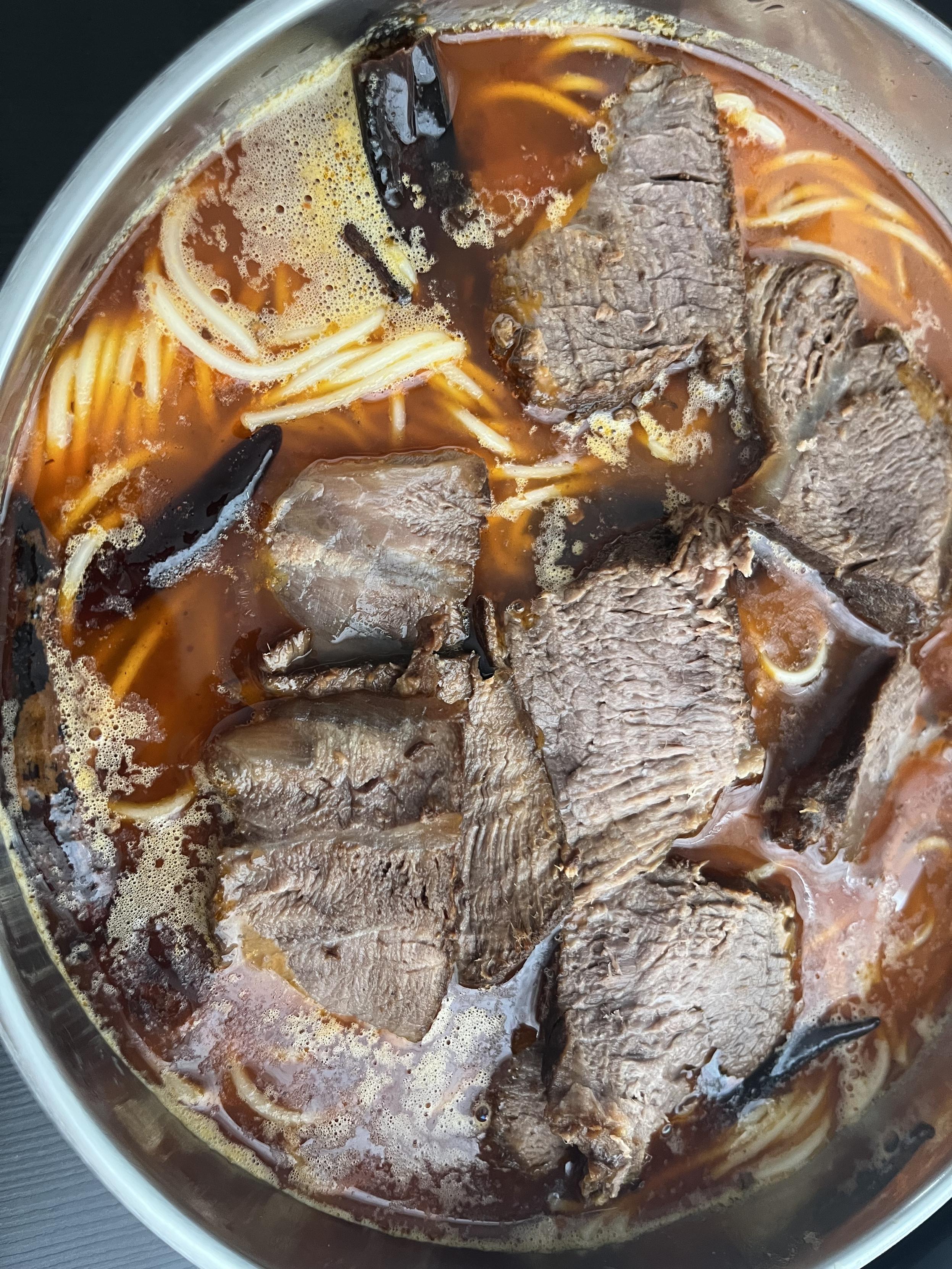 #吃了嘛呢 我觉得韩国人很会做东西吃。昨天炖韩式牛肉汤,记一个方子下回再弄一次。牛肉焯水进高压锅四十五分钟,香菇和海带结不泡发的话可以一起扔进去。这时候准备酱料:韩式辣酱,韩式大酱(没有,换成泥腐乳汁了),紫苏粉(没有,换成五香粉了),海盐(多放一点之后汤的调味都靠这个酱料),鱼露,生抽,芝麻香油,放小白菜上面抓拌均匀腌制一下。到汤好之后揭盖下土豆炖软,下小白菜紫苏叶白玉菇冬瓜,起锅之后下韭菜段和芝麻。美汤啊美汤