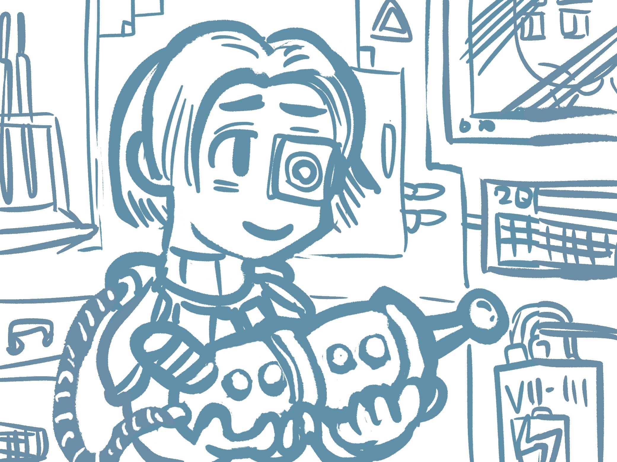 探索艦一號是我很快想出來的角色,但我想他是故事的重心,因為他帶有這個世界觀的科技原理與對人類的價值觀。所以在做設定的時候非常地順利也很愉快。