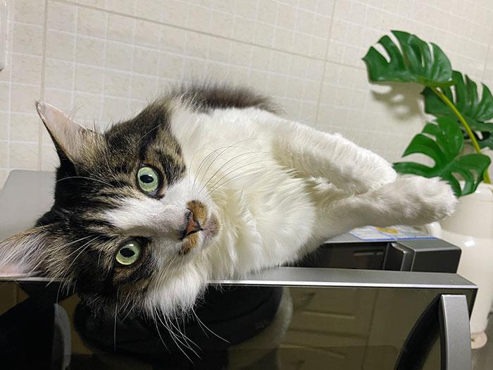 据说尾巴短的猫平衡能力会有点影响,表现在她身上就是几乎没看到爬太高位置,但是今天!宝宝主动上去了!!!虽然看得出是保持一个紧张的姿态蹲着,可是她已经很努力去尝试啦!
