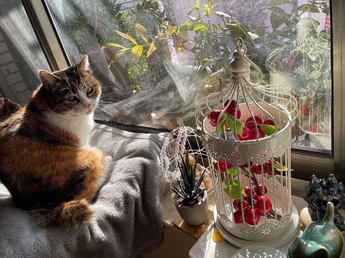 图四:打针后的半小时观察期,打开小窗户也稍微敢伸鼻子出来张望了