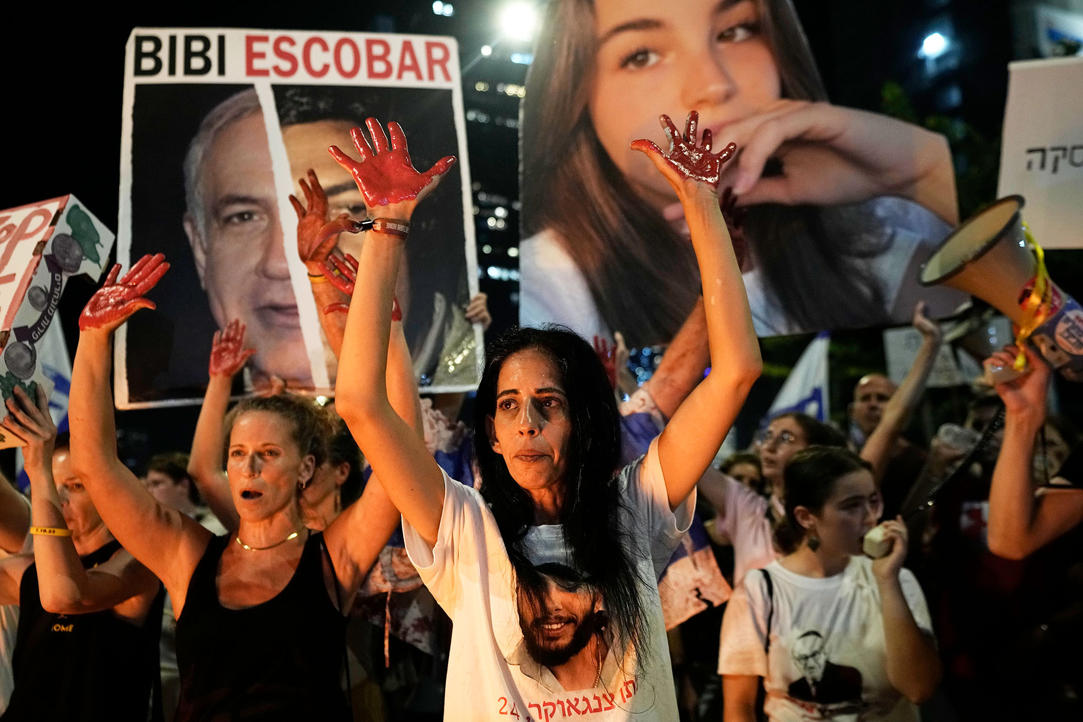 2024年8月17日,以色列,示威者聚集在街头呼吁达成协议,释放在加沙地带的战俘,并抗议以色列总理内塔尼亚(Benjamin Netanyahu)的政府。摄:Tsafrir Abayov/AP/达志影像