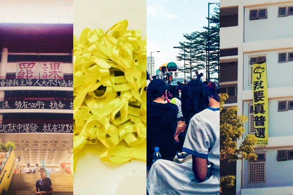 2014年,香港中学生在雨伞运动现场留下的影像。