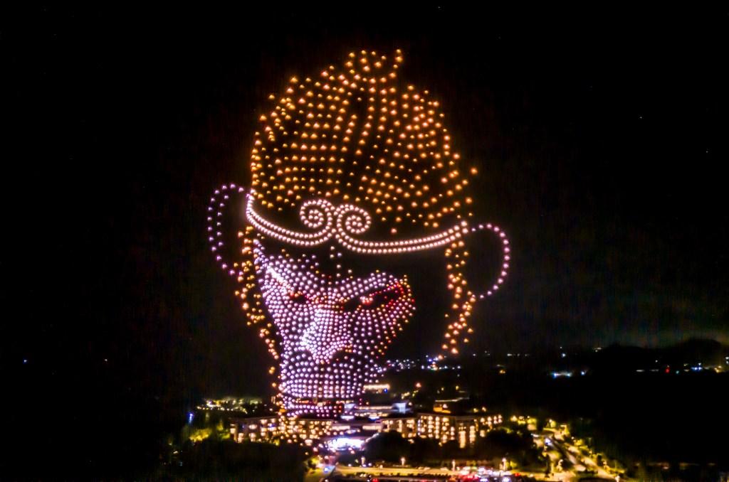 2024年12月2日,无人机在中国东屿岛上空形成“黑神话:悟空”主题图案。摄:Meng Zhongde/VCG via Getty Images