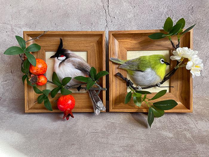 寄出前合影,放一起真好看~ #羊毛毡 #红耳鹎 #绣眼