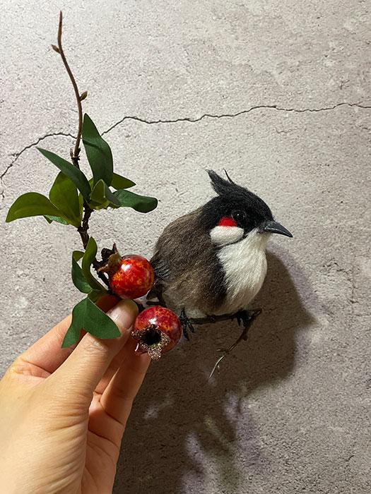 新的一只小红脸做这只特别累因为客人给了相当糊的照片,又是要纪念已经去了啾星的小鸟于是要求像,那真的是想尽办法从模糊的照片里各种找参考细节啊 #羊毛毡 #红耳鹎