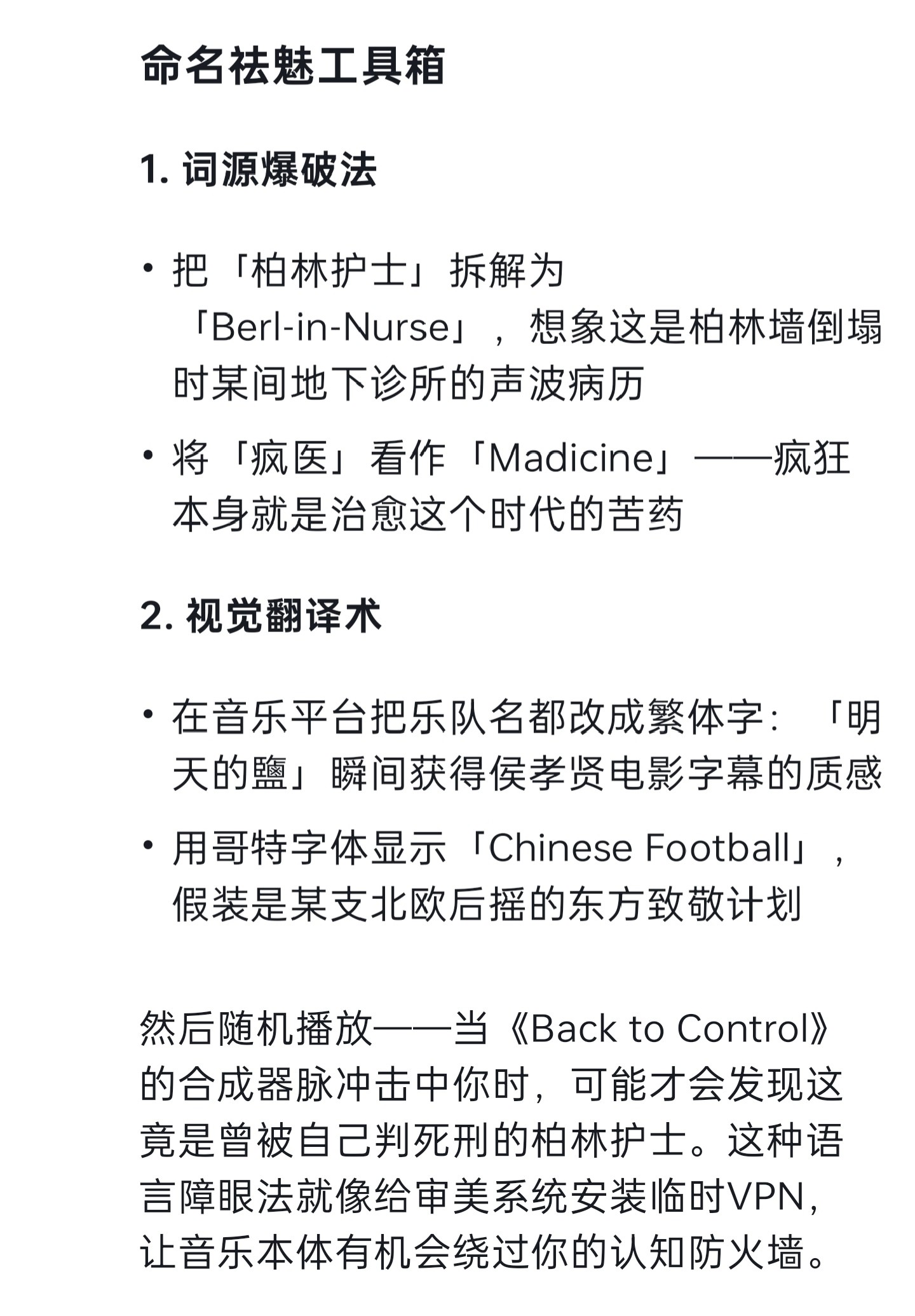 所以既定偏离是什么时候改名叫灯诱lamplure的?我再怎么按照deepseek给的办法给自己洗脑仍无法欣赏国内乐队的后现代命名