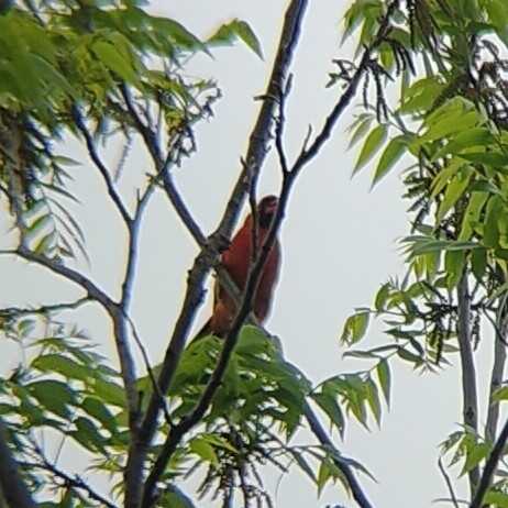 这个鸟总是能听到叫,但是非常非常难找,最后一共看了两次,拍到一次,但拍的不好,这是一种彩色的鸟,颜色非常丰富,照片体现不了一点