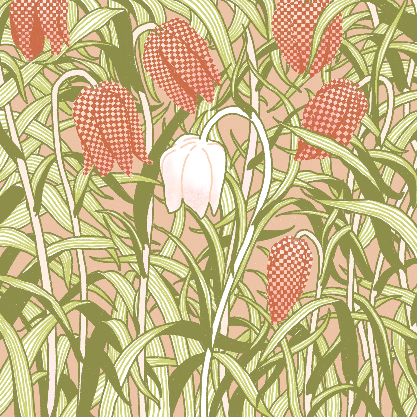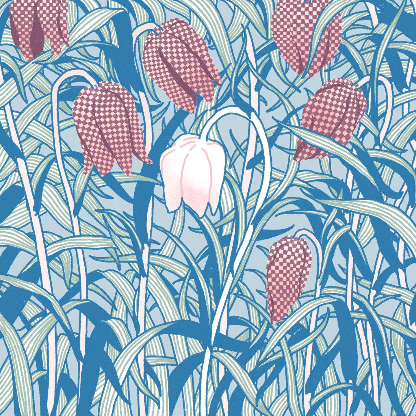 去年春天在Kew Gardens看到了许多花格贝母,觉得好喜欢好有装饰感就画了一下