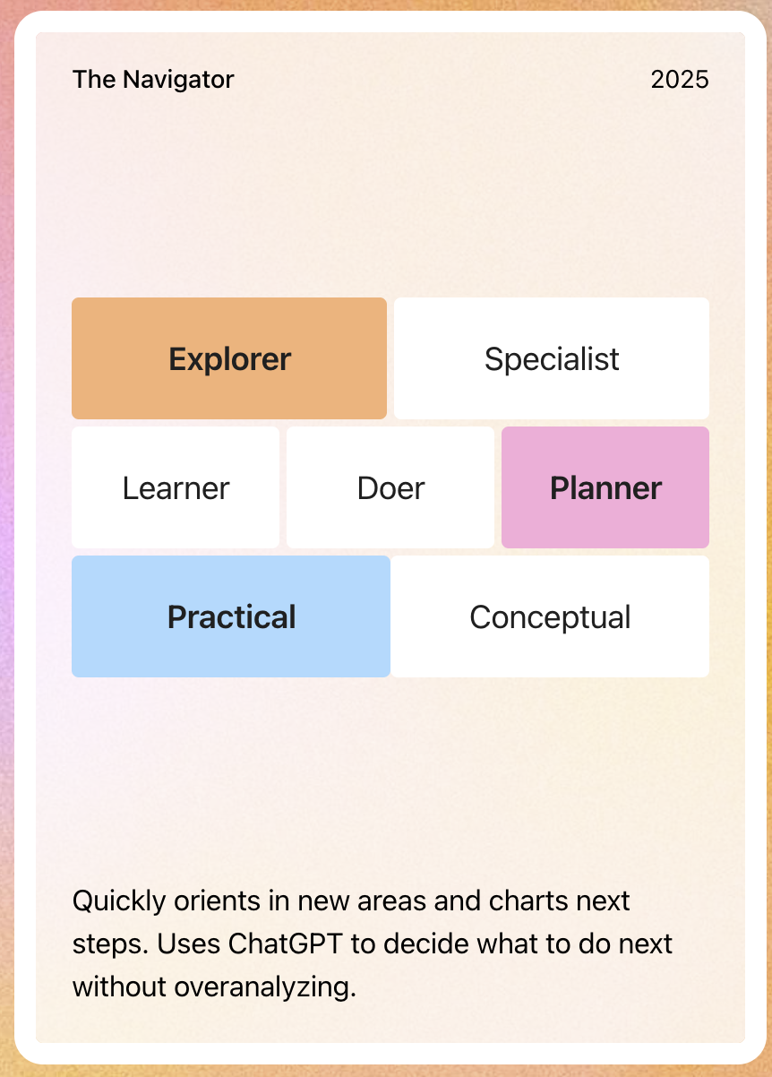 chatGPT 怎么都能有年终总结…… 你别说还有点准(但 perplexity 送了一年会员于是我暂时叛变了(没有很多码农问题大概是因为工作内容都用的是公司的 stack)