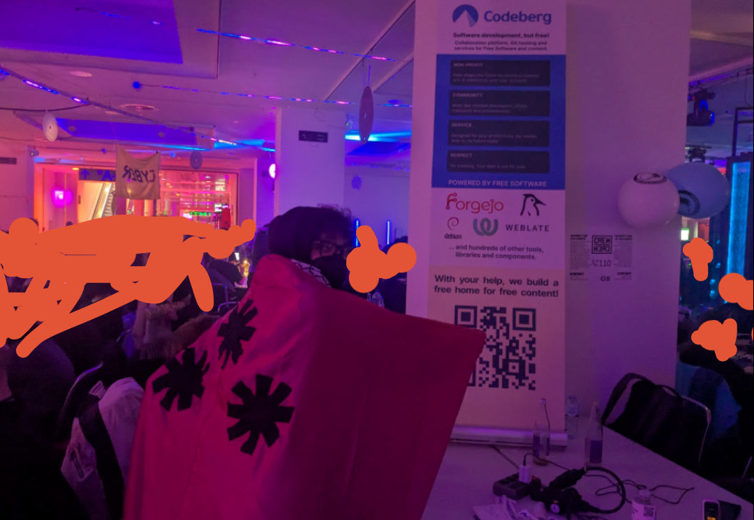 Made it to the @Codeberg assembly at #39c3 with @dantescanline and @trinetra and we snatched a fresh @FediverseSymbol wearing @tommi on the way. Codeberg is the home of FEPs which are the underlying documents spearheading the way to a fediverse that keeps moving forward so it felt the moment needed to be captured. Thanks to @n0toose for telling us all the gossip.
