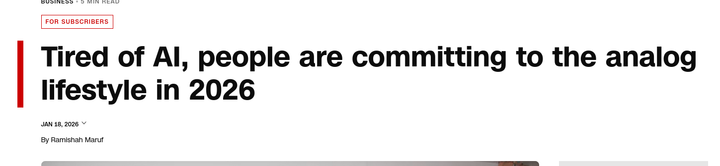 CNN: Tired of AI, people are committing to the analog lifestyle in 2026