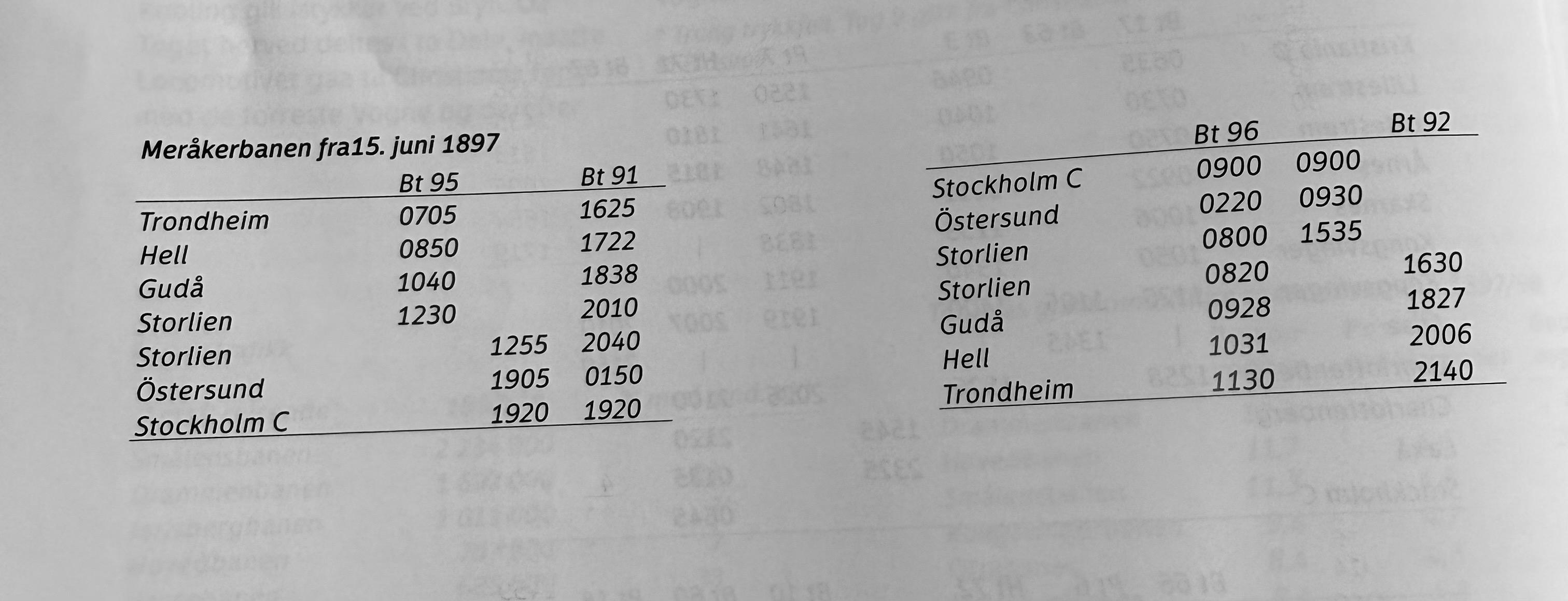 <p>I 1897 (attennittisju):</p><p>> Om sommeren var det forbindelse inn i Sverige, for da gikk det nattog mellom <a href="/tags/storlien/" rel="tag">#Storlien</a> og <a href="/tags/stockholm/" rel="tag">#Stockholm</a>, og det kjørte så raskt at det tok igjen morgentoget et eller annet sted langt inne i Sverige. Og enda bedre, om sommeren hadde dette togparet en gjennomgående sovevogn mellom <a href="/tags/trondheim/" rel="tag">#Trondheim</a> og Stockholm to dager i uka.</p><p>Direkte <a href="/tags/nattog/" rel="tag">#nattog</a> mellom Trondheim og Stockholm hadde vært noe!</p><p><a href="/tags/togtut/" rel="tag">#togtut</a> <a href="/tags/allheimen/" rel="tag">#allheimen</a> <a href="/tags/crossborderrail/" rel="tag">#CrossBorderRail</a></p>