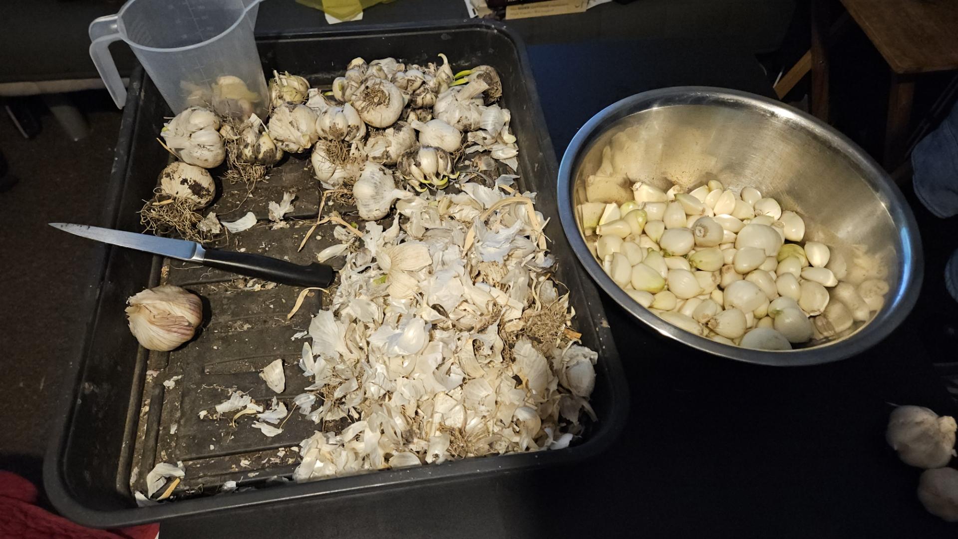 The garlic will be going into the food processor with some oil and then get frozen as "garlic cubes".