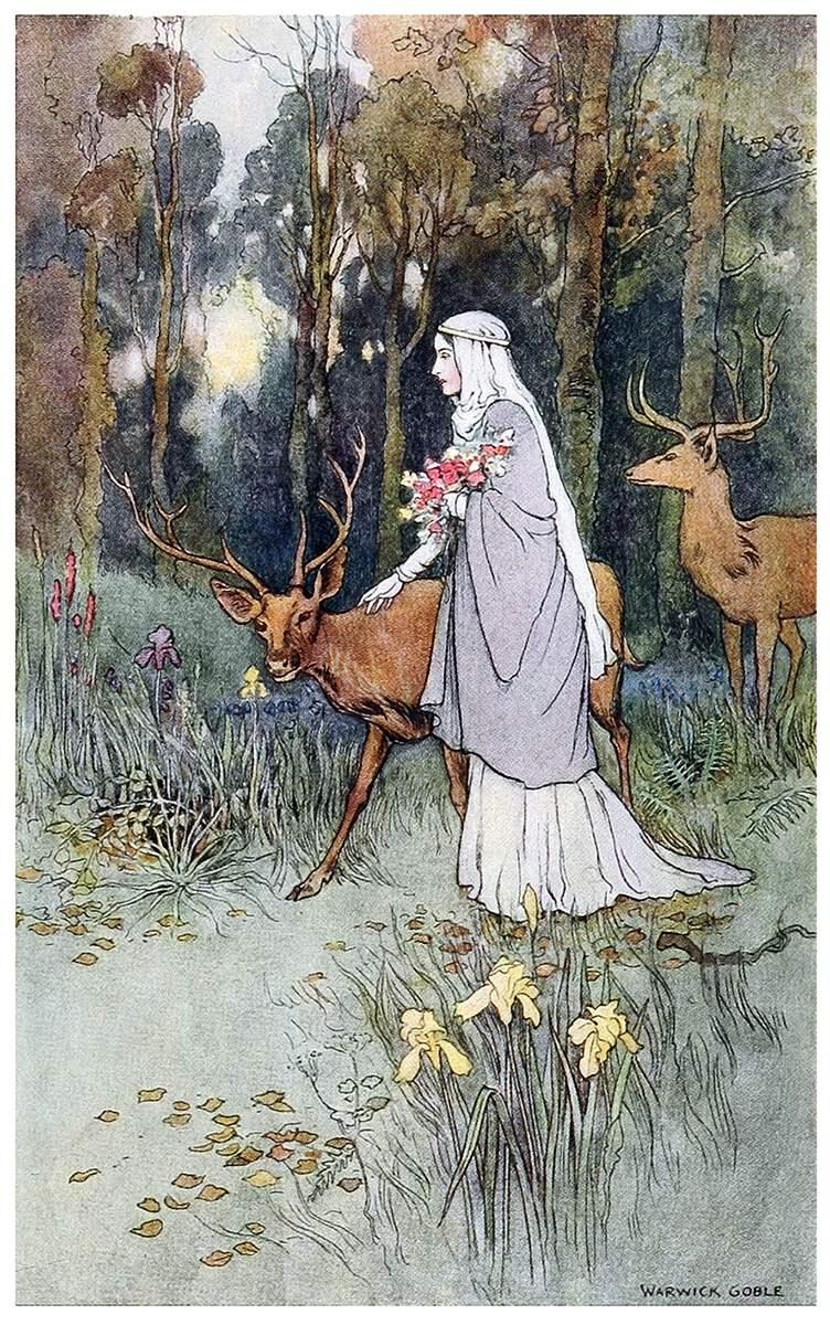 Warwick Goble, from "The Book of Fairy Poetry," Bombay, Calcutta, London: 1920 #art #illustration #ChildrensBook https://www.oldbookillustrations.com/illustrations/deer-wooed/