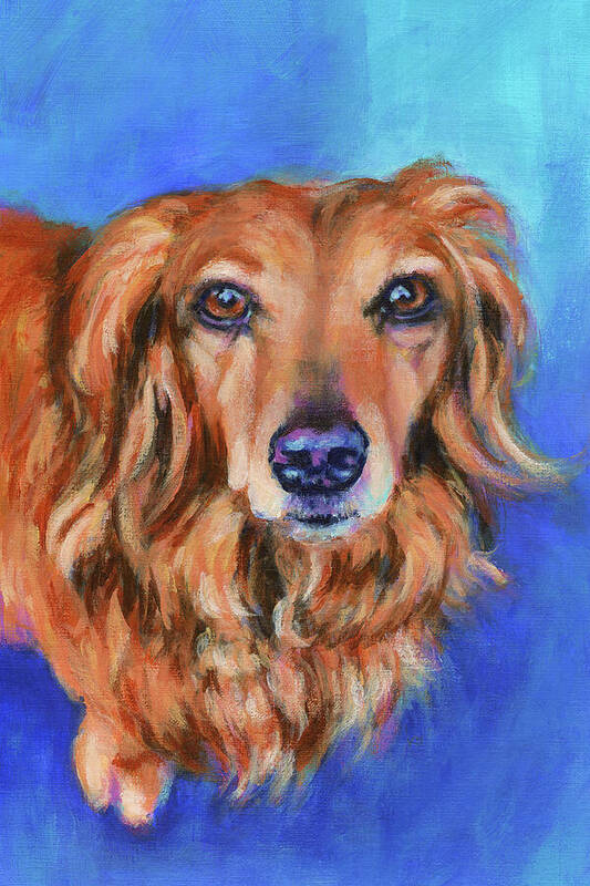 Long-haired Dachshund portrait - hand painted acrylic painting.
