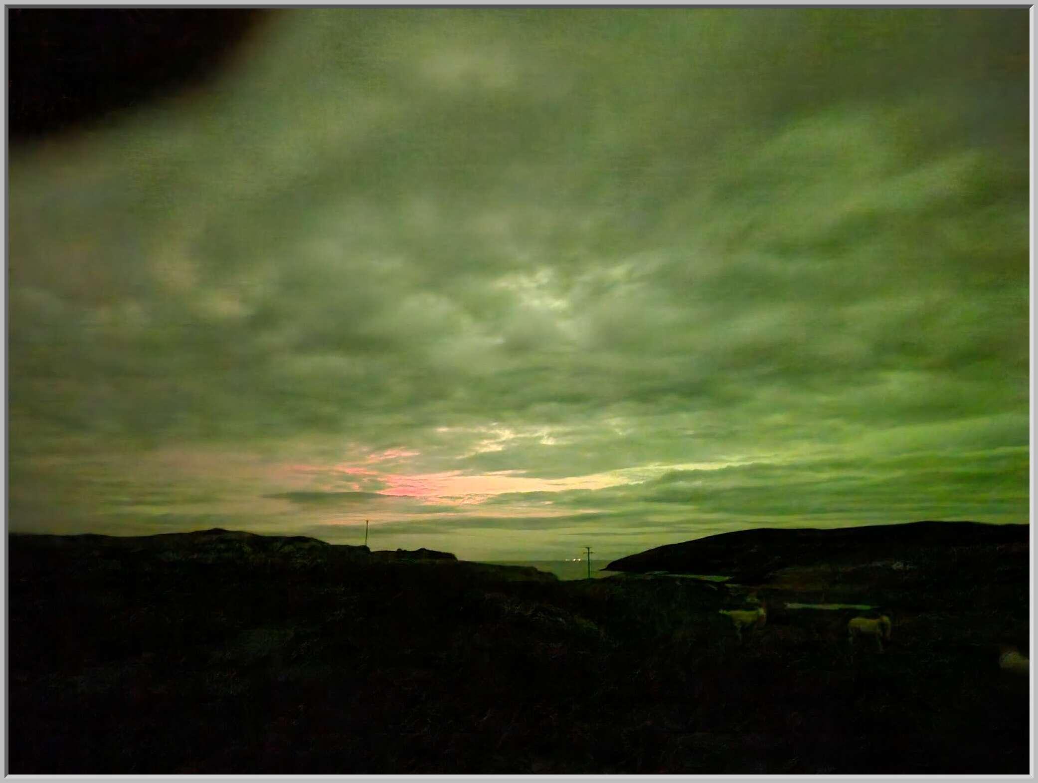 The lights of Stornoway can be seen across the Minch in one pic (as well as my finger over the lens)