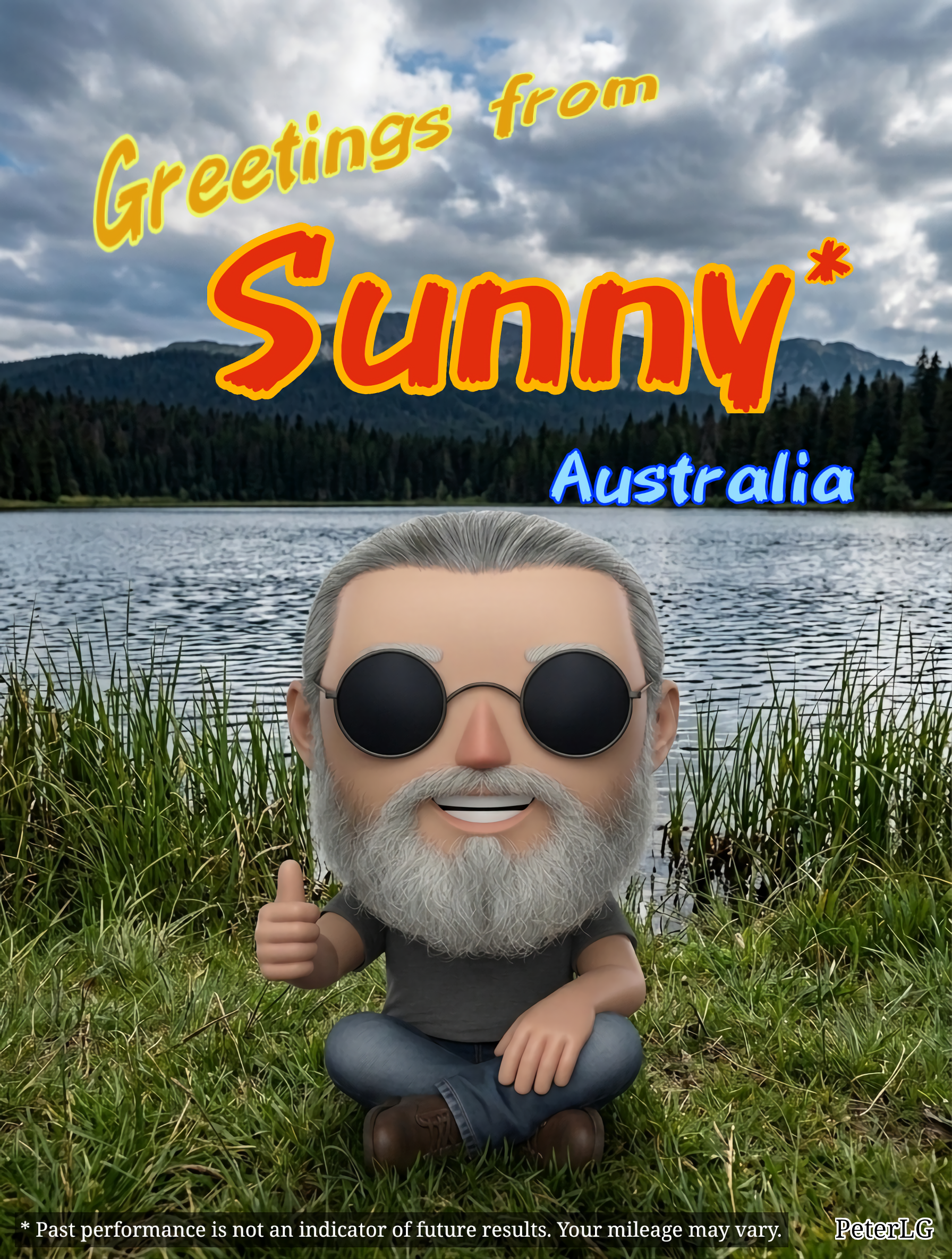 <p>Greetings from sunny Australia.</p><p>YMMV.</p><p><a href="/tags/australia/" rel="tag">#Australia</a></p>