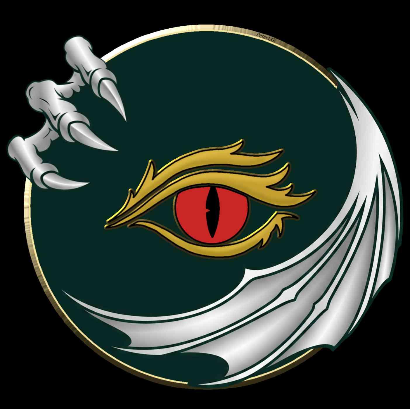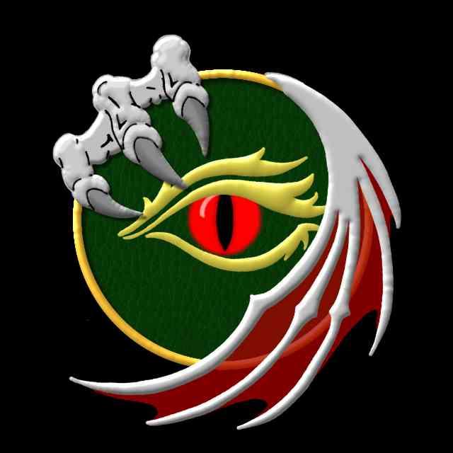 My new avatar. A dark green disk with a red dragon's eye centred, claws grasping the top left and a wing enfolding the bottom right. By me in iBis Paint.