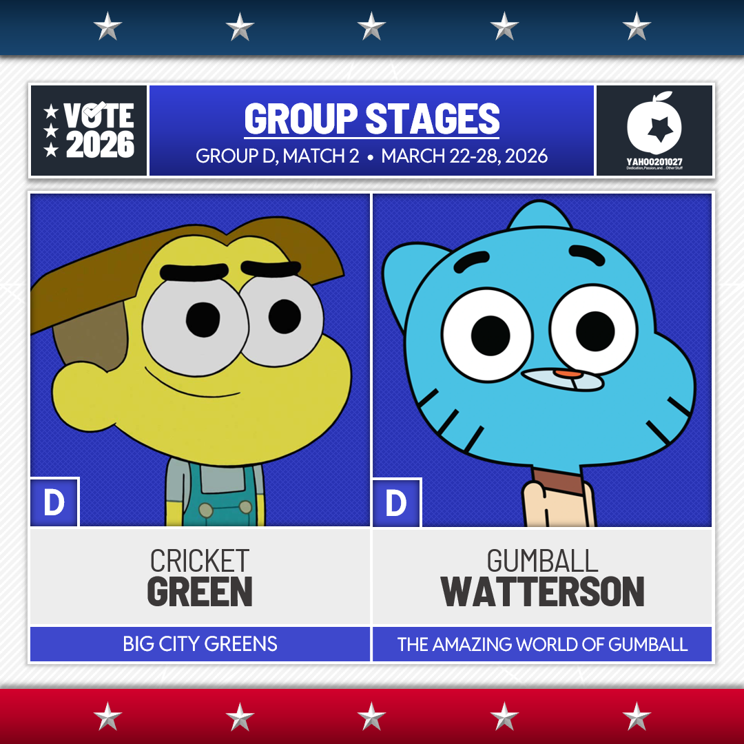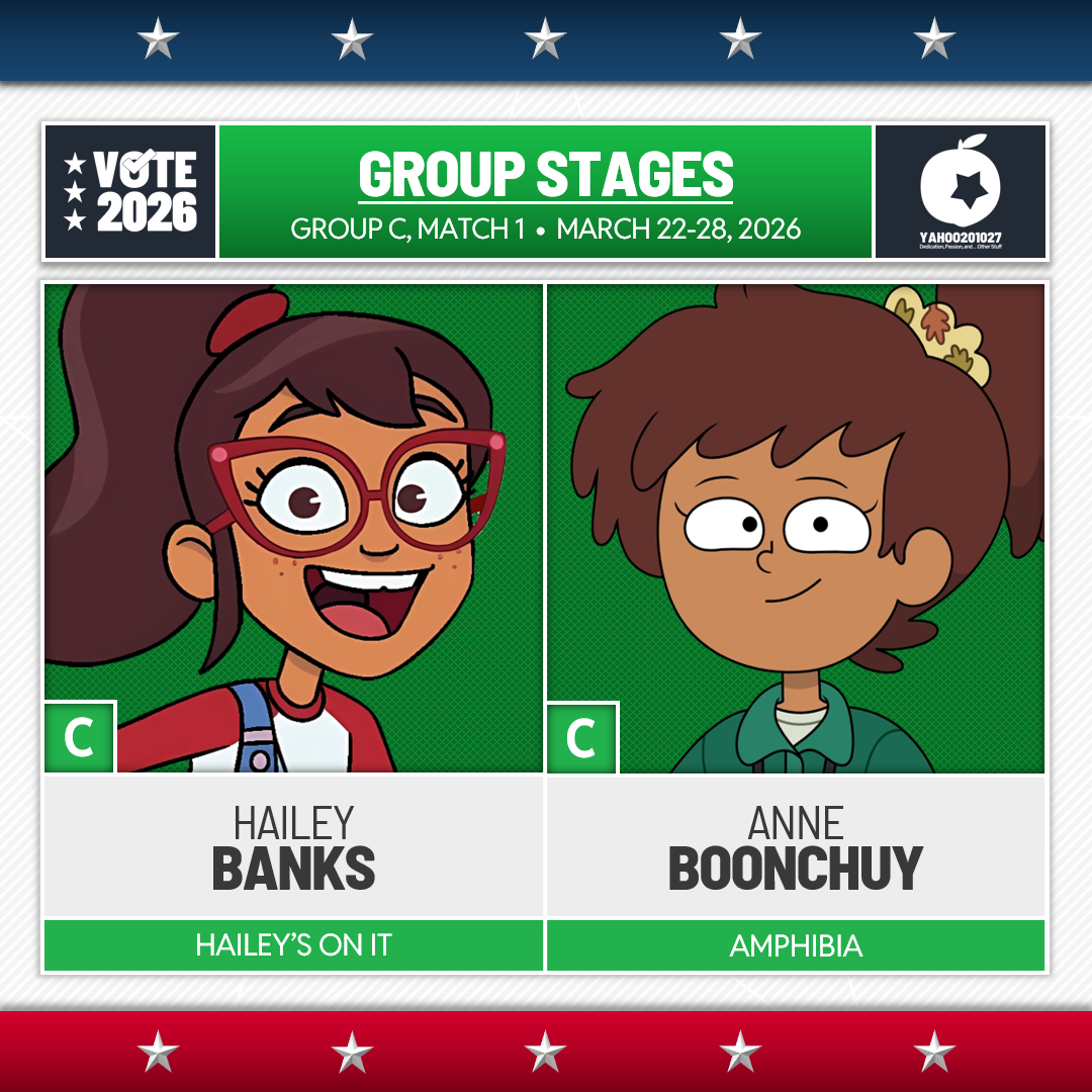 <p>The spotlight shifts back to the cartoon community with two returning candidates in Group C between Hailey Banks (Hailey's On It) and Anne Boonchuy (Amphibia). And two new candidates in Group D between Cricket Green (Big City Greens) and Gumball Watterson (The Amazing World of Gumball). </p><p>Group C: <a href="https://rb.gy/lhp50e" rel="nofollow"><span class="invisible">https://</span>rb.gy/lhp50e</a> <br>Group D: <a href="https://rb.gy/c98ll4" rel="nofollow"><span class="invisible">https://</span>rb.gy/c98ll4</a> </p><p><a href="/tags/battleoftheweek/" rel="tag">#BattleOfTheWeek</a> <a href="/tags/botw2026/" rel="tag">#BOTW2026</a> <a href="/tags/haileysonit/" rel="tag">#HaileysOnIt</a> <a href="/tags/amphibia/" rel="tag">#Amphibia</a> <a href="/tags/bigcitygreens/" rel="tag">#BigCityGreens</a> <a href="/tags/theamazingworldofgumball/" rel="tag">#TheAmazingWorldOfGumball</a> <a href="/tags/cartoon/" rel="tag">#Cartoon</a> <a href="/tags/animation/" rel="tag">#Animation</a></p>