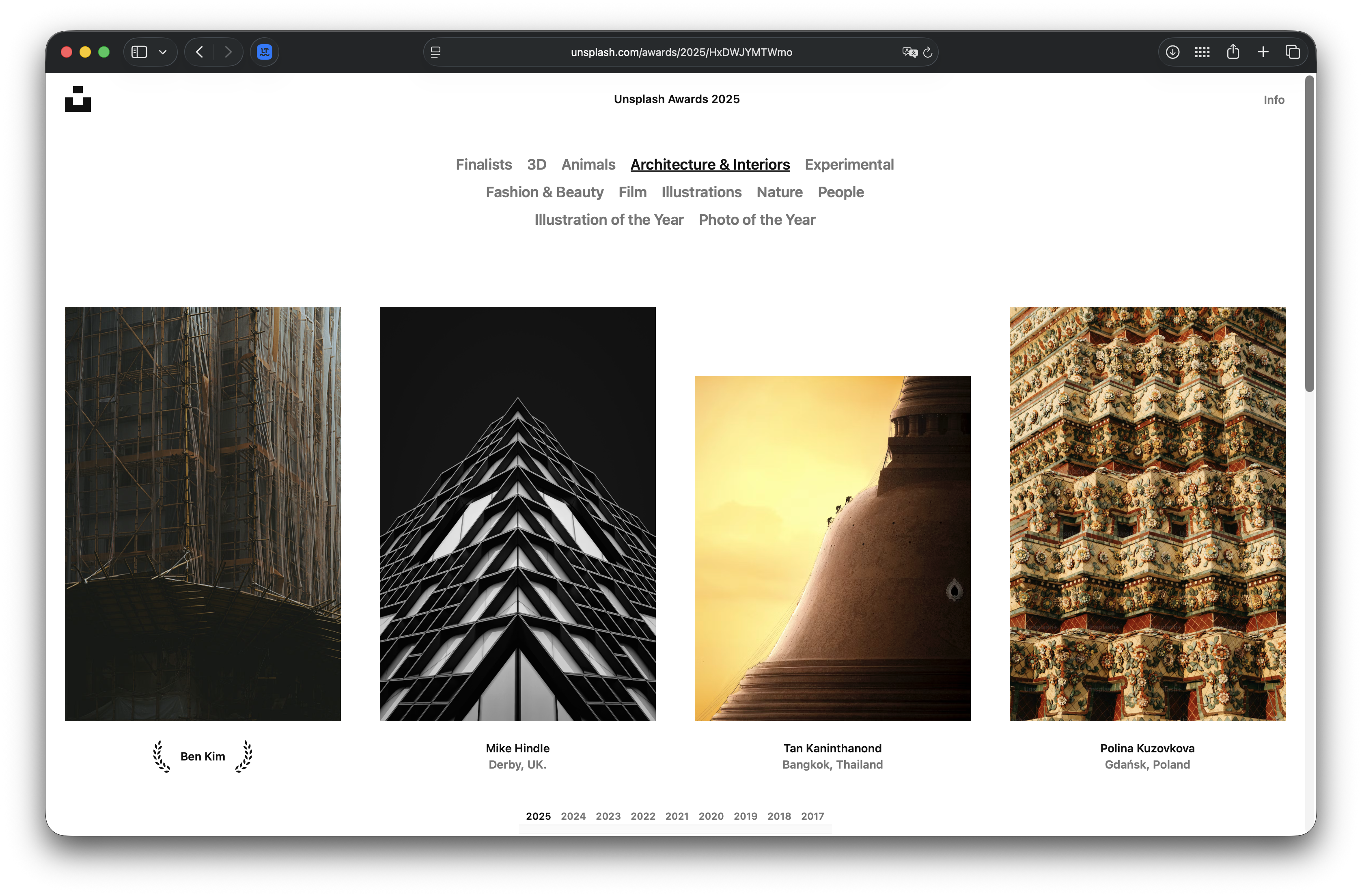 Well, this is surreal 😳 Here are the finalists in the Architecture & Interiors category of the Unsplash Awards 2025 🏆