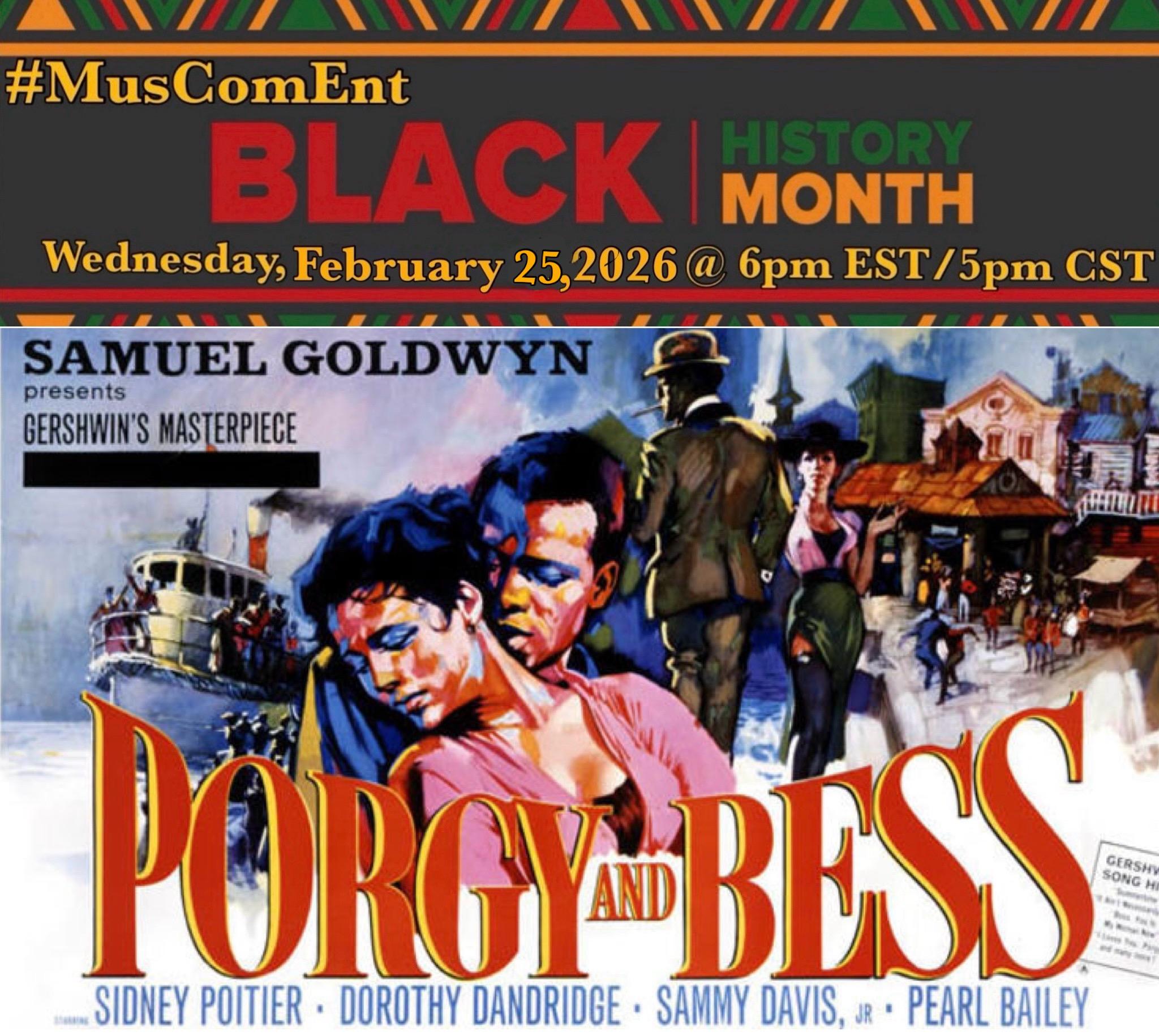 <p>Join me Wednesday AKA TODAY @ 6pm EST/5pm EST when <a href="/tags/muscoment/" rel="tag">#MusComEnt</a> closes out <a href="/tags/blackhistorymonth/" rel="tag">#BlackHistoryMonth</a> with the rarely seen “Porgy and Bess” (1959). Playlist available here (<a href="https://youtube.com/playlist?list=PL2Zslnc5XTfv_hF-1VylS6GPEd6Cqo-4h&si=d5ZnhVqQP1qS1x4I" rel="nofollow" class="ellipsis" title="youtube.com/playlist?list=PL2Zslnc5XTfv_hF-1VylS6GPEd6Cqo-4h&si=d5ZnhVqQP1qS1x4I"><span class="invisible">https://</span><span class="ellipsis">youtube.com/playlist?list=PL2Z</span><span class="invisible">slnc5XTfv_hF-1VylS6GPEd6Cqo-4h&si=d5ZnhVqQP1qS1x4I</span></a>) <br>(1/4)</p>