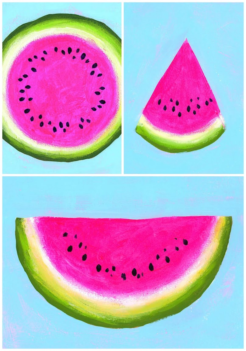 Enjoy my mini series of three acrylic paintings of fresh watermelons!