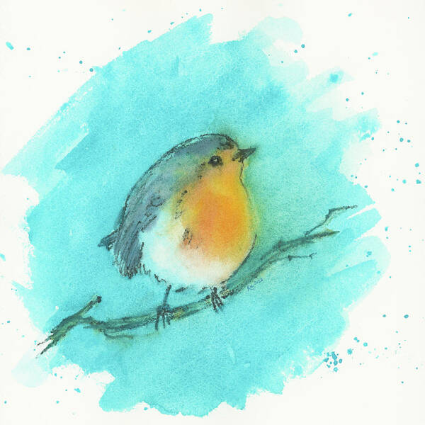Robin in the blue - a little handmade watercolor painting for the bird lovers.