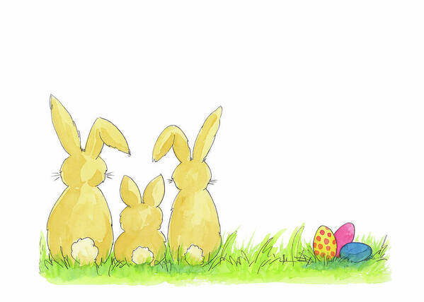 Easter bunny family handmade watercolor greeting card - https://karen-kaspar.pixels.com/featured/easter-bunny-family-karen-kaspar.html