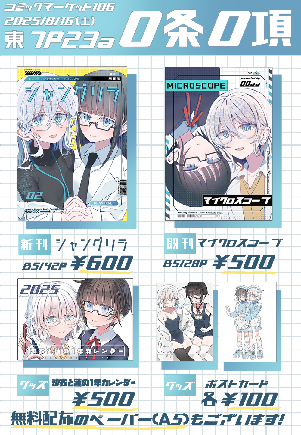 8/16(土)東7 P-23a 0条0項 カガクの新刊漫画になります!