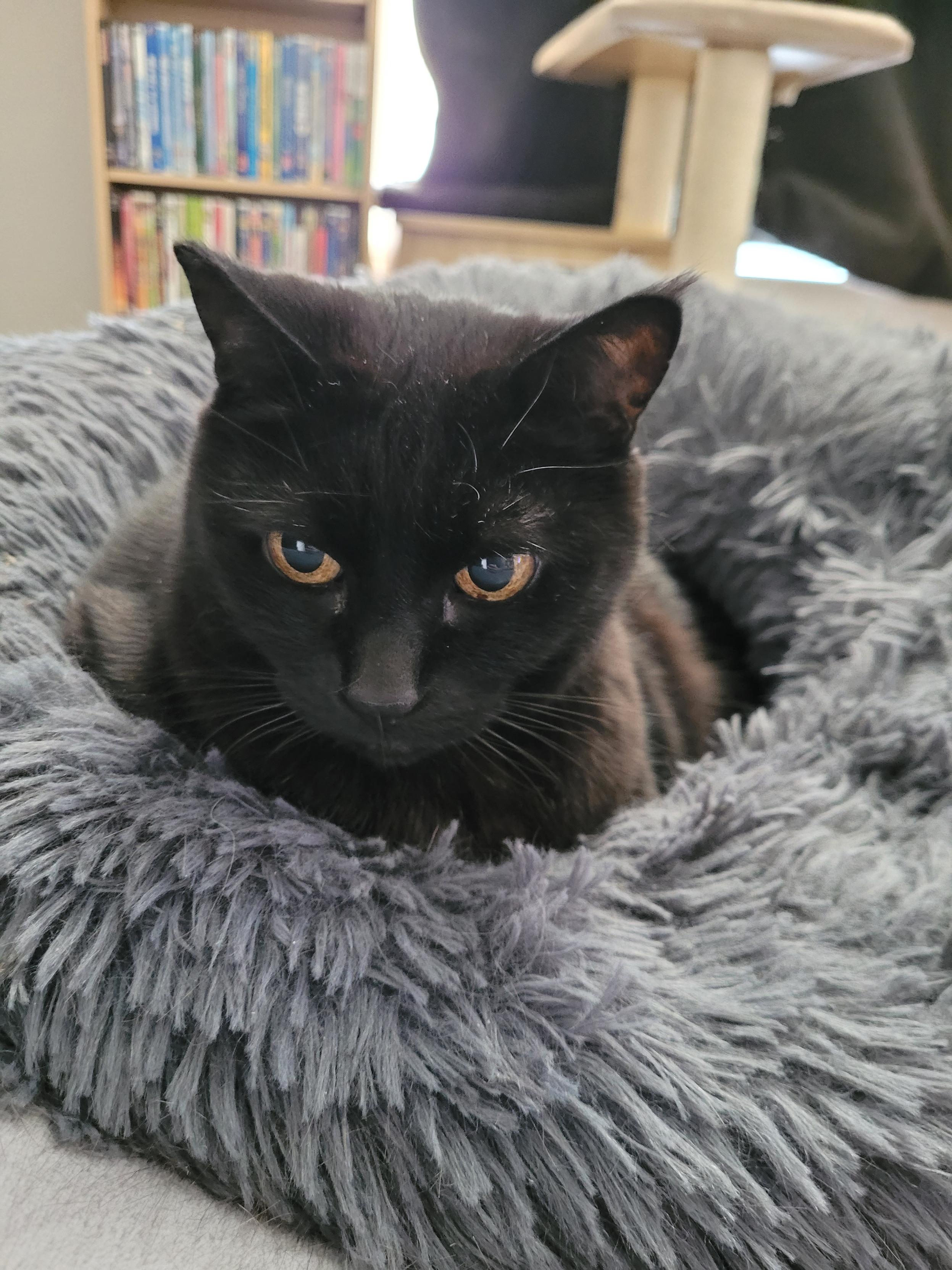 Ebony contemplates Saturday. Happy #Caturday, #CatsOfMastodon!