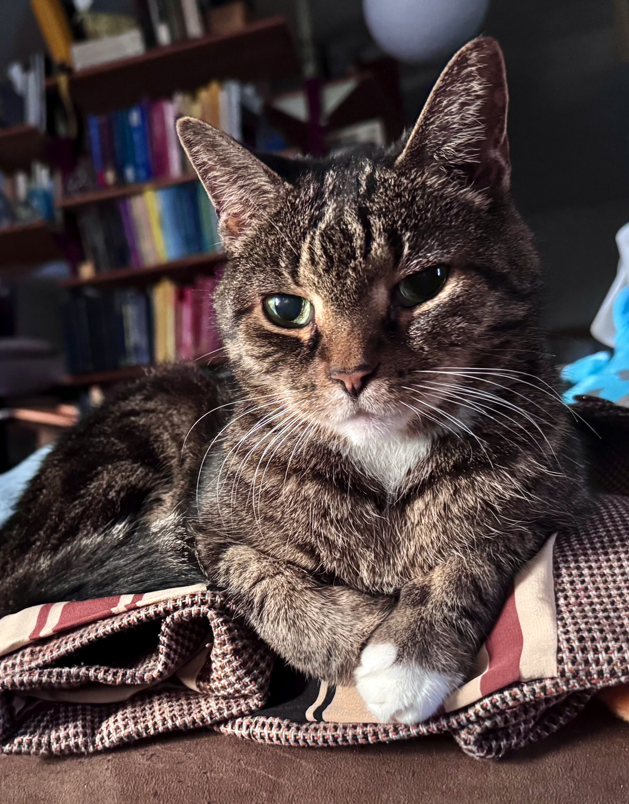 She prefers to nap on a tweed jacket. Please provide one for her on the couch. #picathecat #catsofmastodon
