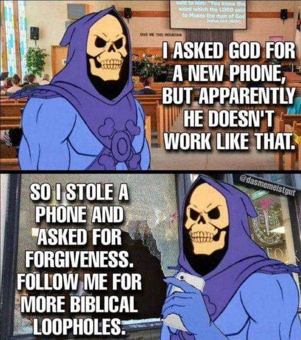 <p><a href="/tags/biblicalloopholes/" rel="tag">#BiblicalLoopholes</a> <a href="/tags/humour/" rel="tag">#Humour</a> <a href="/tags/christianity/" rel="tag">#Christianity</a> <a href="/tags/hypocrisy/" rel="tag">#Hypocrisy</a></p>