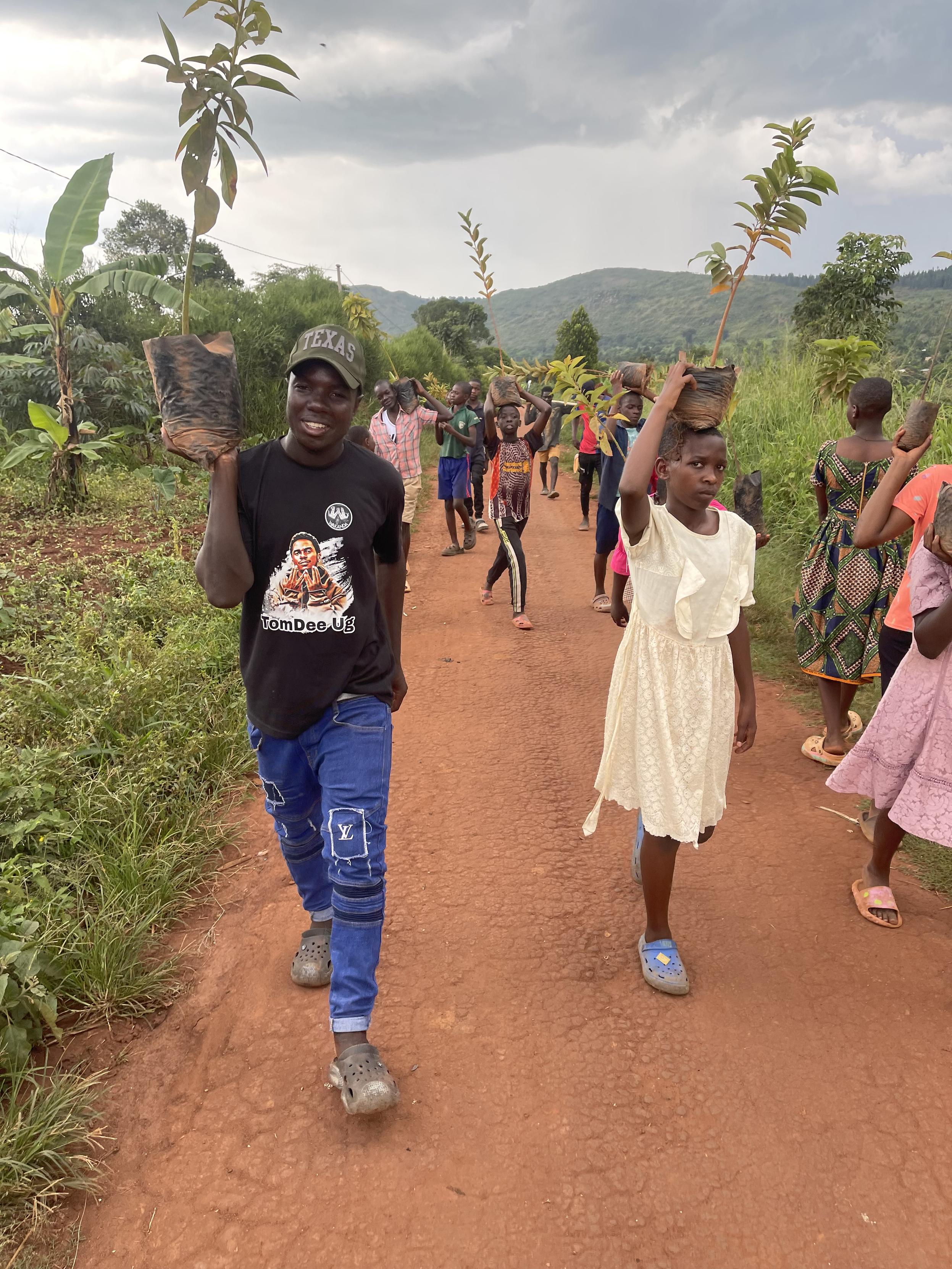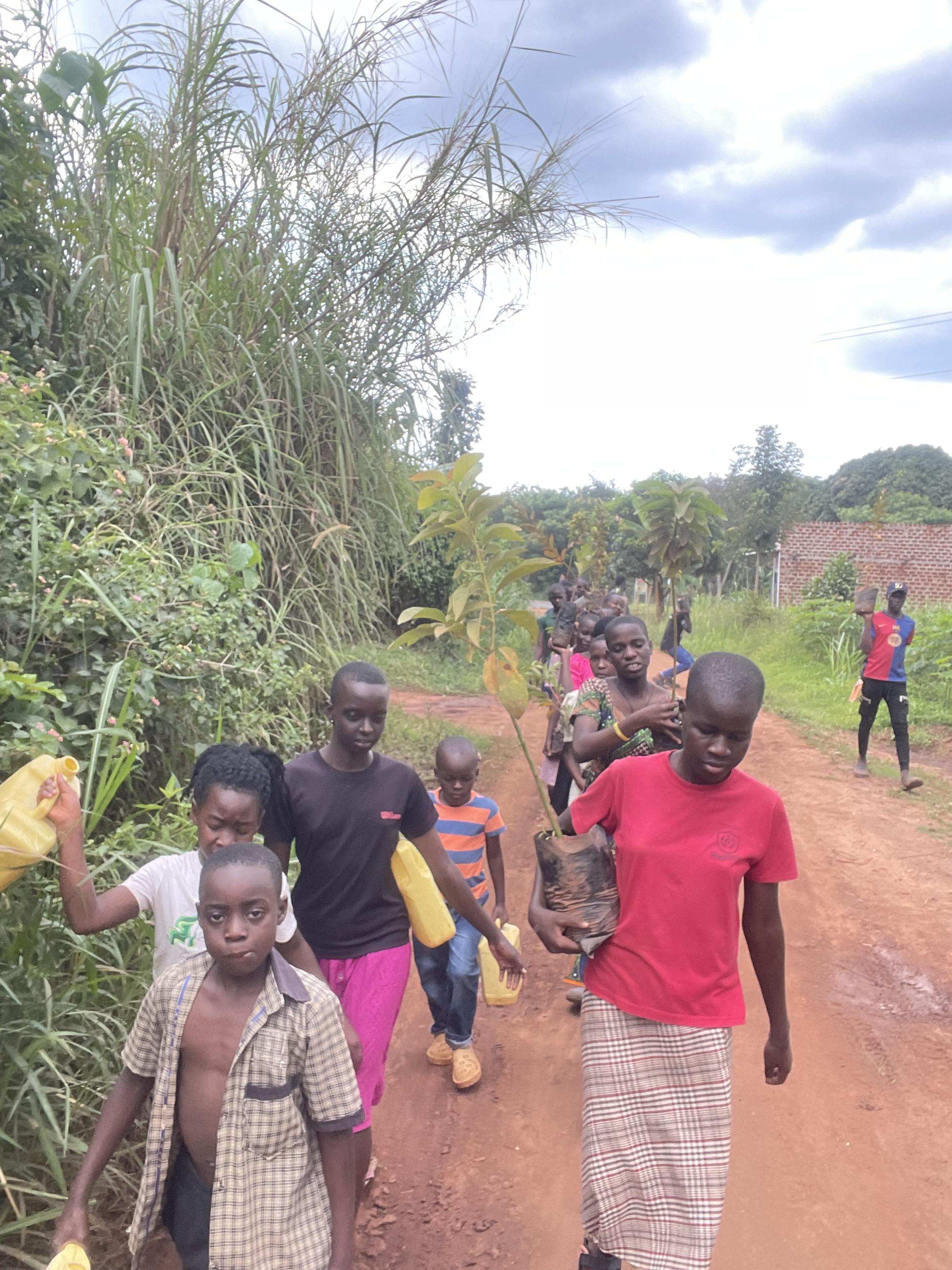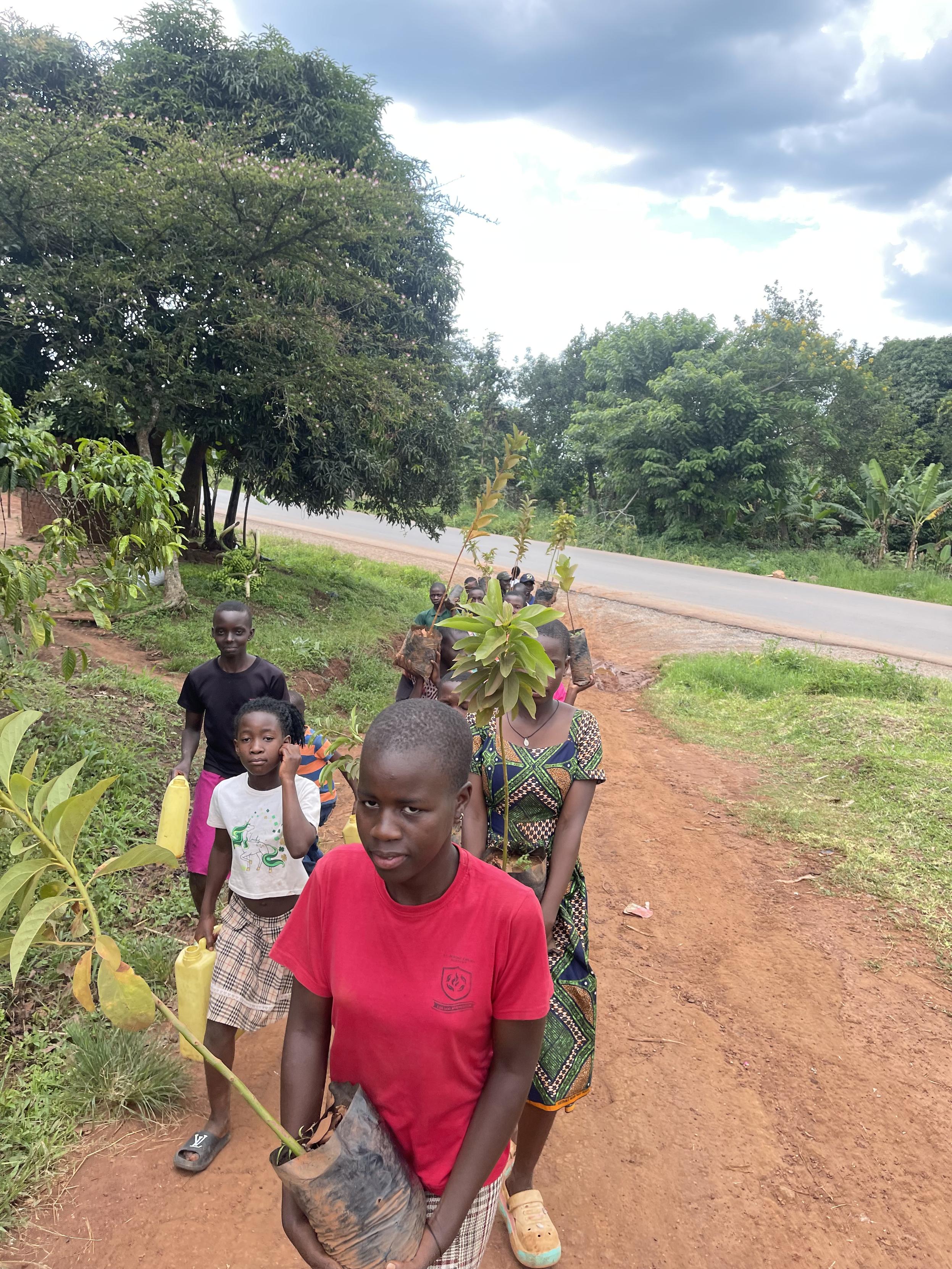 Yesterday we held a colorful tree-planting program in the Lunnya the small town Together with pupils from Lwamata Primary School in Lunnya, we walked through the the community carrying tree seedlings to the planting site. Along the way, many people joined and learned about our mission. Even those who didn’t know us before came to understand our work to protect the environment, fight climate change, and secure a better future through actions like tree planting.