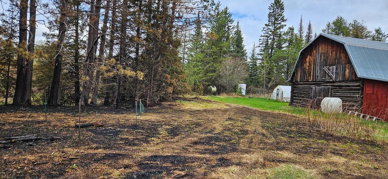 No details available, but I think the fire got pinched between the clearing around the buildings and the stream/bog/beaver pond behind it (left side of this picture). Based on the tracks I also think the fire crews helped keep the flames off the 100 yr old barn seen here.