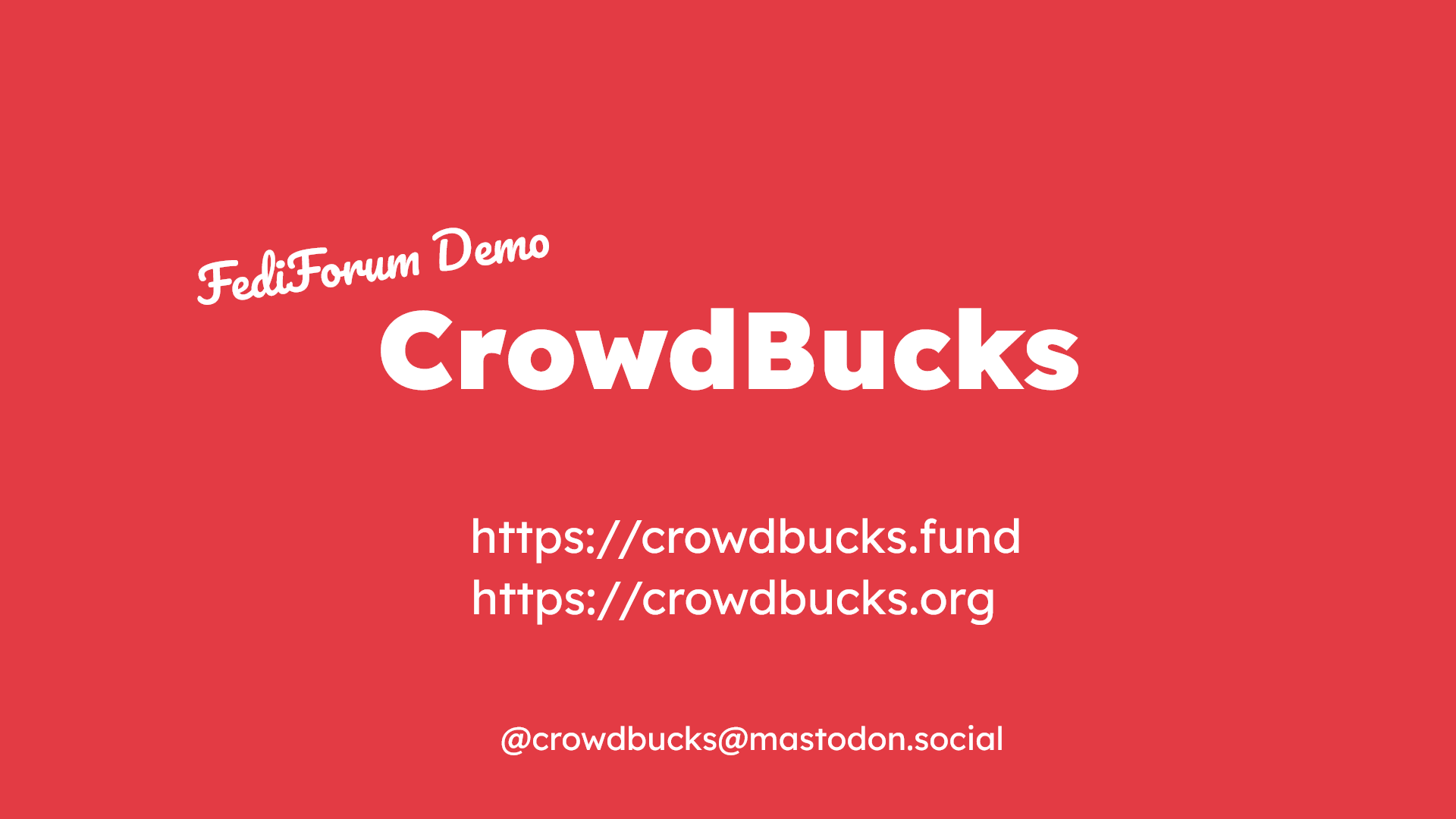 Today I will be doing a quick 10 minute demo of CrowdBucks at FediForum.