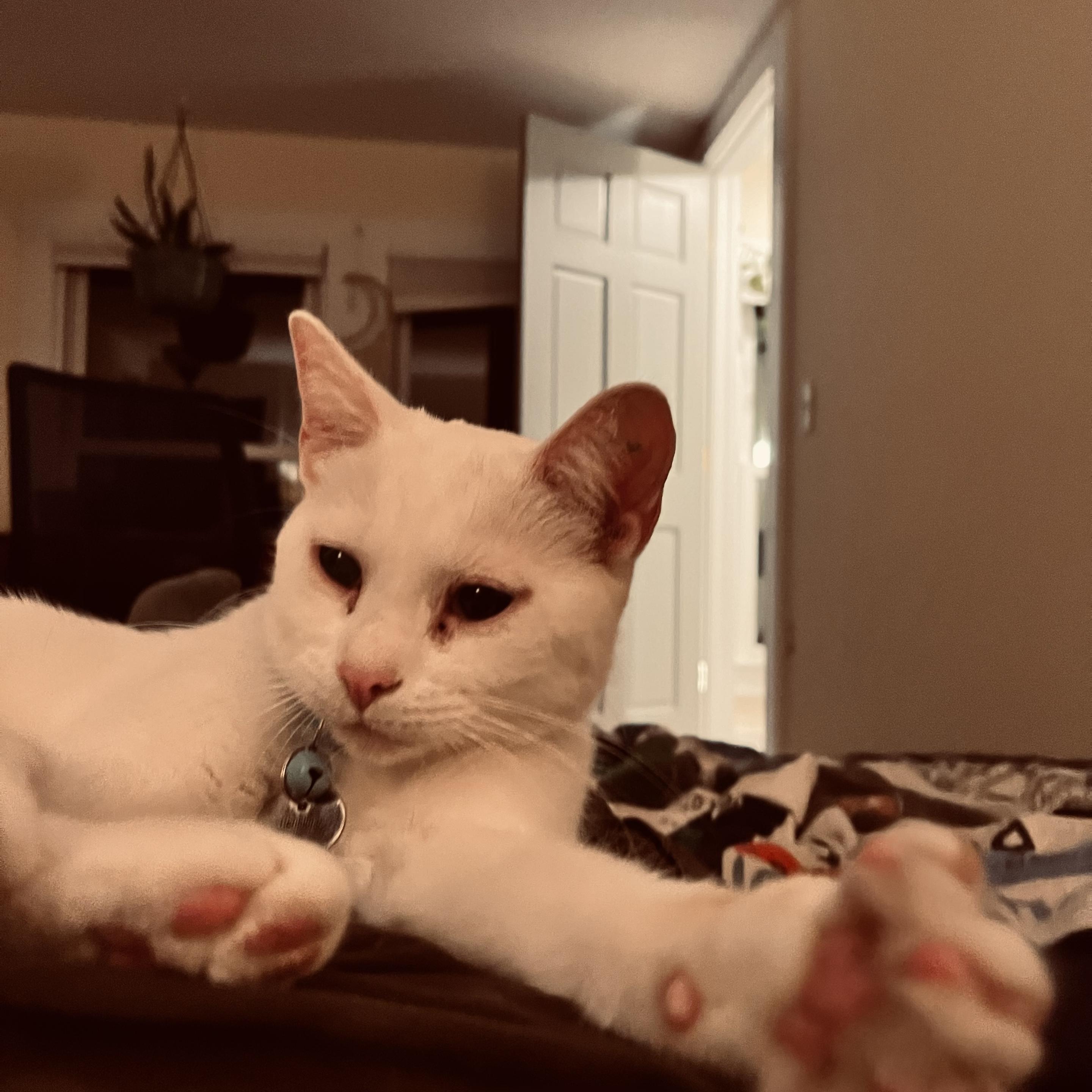 More squishiness #CatsOfMastodon #sheenapenelope #cute #cutecats #whitekitten