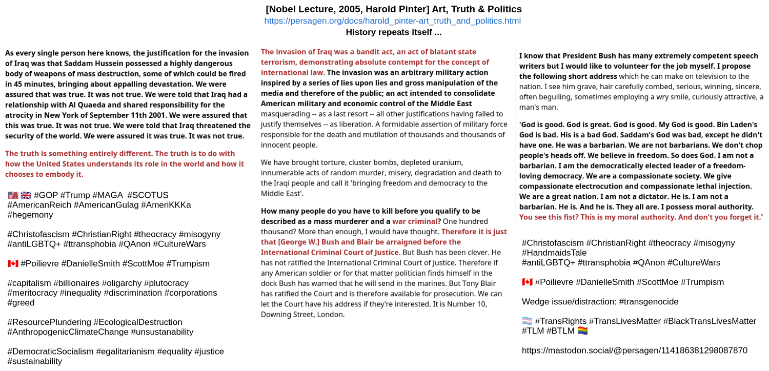 <p>πΊπ² Trump's String of Successes π€<br><a href="https://www.dcreport.org/2025/07/06/trumps-string-of-successes" rel="nofollow" class="ellipsis" title="www.dcreport.org/2025/07/06/trumps-string-of-successes"><span class="invisible">https://</span><span class="ellipsis">www.dcreport.org/2025/07/06/tr</span><span class="invisible">umps-string-of-successes</span></a><br><a href="/tags/problemheadline/" rel="tag">#ProblemHeadline</a></p><p>Hitler, Stalin, Mussolini ... had strings of success - until they didn't.<br>It's authoritarianism backed by wealth, power & influence.</p><p>Dangerous & deranged in his own right, Trump is a puppet.</p><p>πΊπ² π¬π§ π¨π¦ <a href="/tags/christofascism/" rel="tag">#Christofascism</a> <a href="/tags/antilgbt/" rel="tag">#antiLGBT</a> <a href="/tags/transgenocide/" rel="tag">#transgenocide</a><br>π¨π¦ <a href="/tags/poilievre/" rel="tag">#Poilievre</a> <a href="/tags/trumpism/" rel="tag">#Trumpism</a> <a href="/tags/daniellesmith/" rel="tag">#DanielleSmith</a></p><p>π³οΈββ§οΈ <a href="/tags/tlm/" rel="tag">#TLM</a><br><a href="https://mastodon.social/@persagen/114186381298087870" rel="nofollow" class="ellipsis" title="mastodon.social/@persagen/114186381298087870"><span class="invisible">https://</span><span class="ellipsis">mastodon.social/@persagen/1141</span><span class="invisible">86381298087870</span></a></p><p>π¨π¦ Values<br><a href="https://docs.google.com/document/d/1T8eCeeVbYmsEzvvyUmoDC0KeKvjB9E57YG4AvU97RZo" rel="nofollow" class="ellipsis" title="docs.google.com/document/d/1T8eCeeVbYmsEzvvyUmoDC0KeKvjB9E57YG4AvU97RZo"><span class="invisible">https://</span><span class="ellipsis">docs.google.com/document/d/1T8</span><span class="invisible">eCeeVbYmsEzvvyUmoDC0KeKvjB9E57YG4AvU97RZo</span></a></p><p><a href="/tags/capitalism/" rel="tag">#capitalism</a> <a href="/tags/inequality/" rel="tag">#inequality</a></p><p>Collaborate/advocate/educate/resist<br><a href="/tags/socialism/" rel="tag">#socialism</a> <a href="/tags/justice/" rel="tag">#justice</a></p>