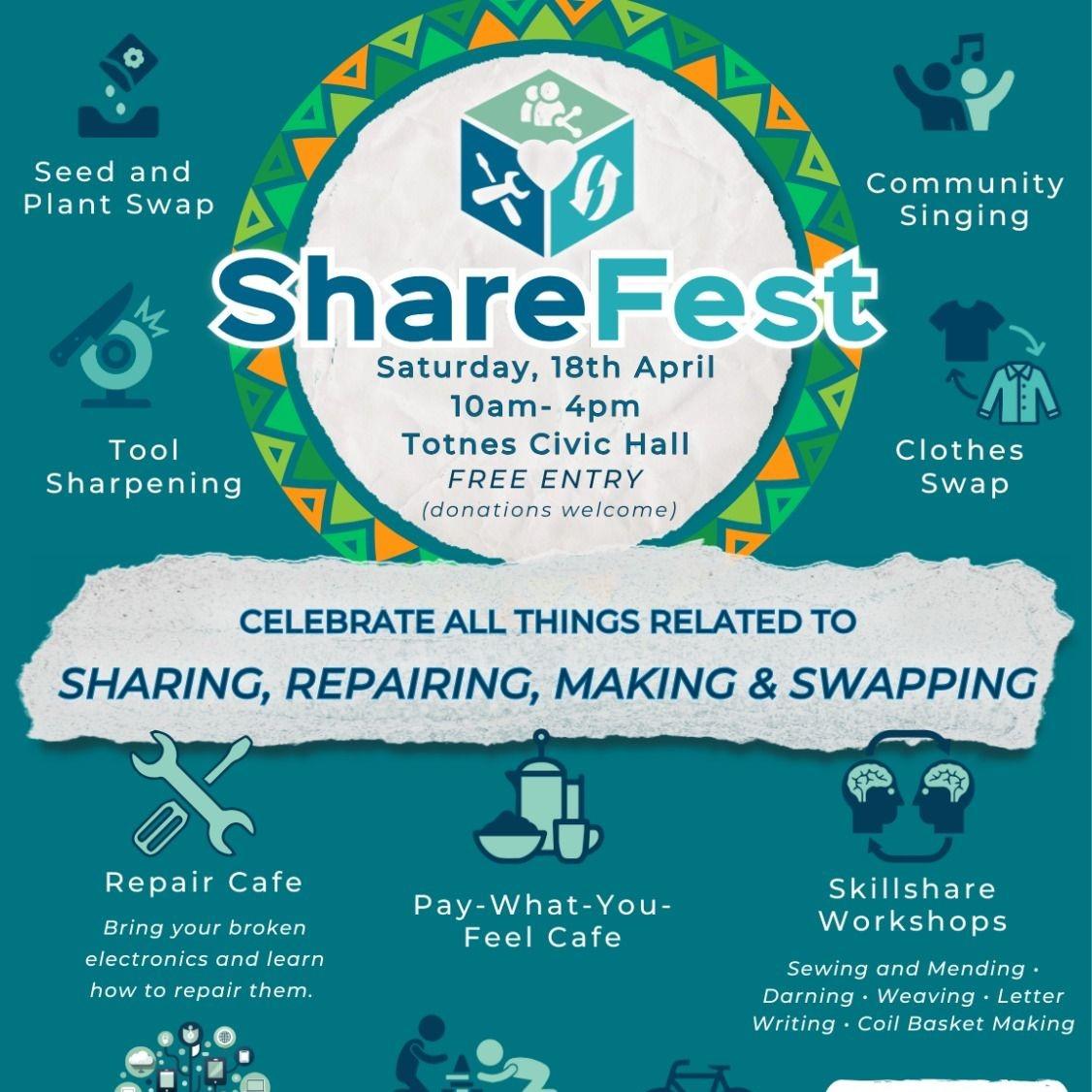 <p><a href="/tags/sharefest/" rel="tag">#ShareFest</a> <a href="/tags/totnes/" rel="tag">#Totnes</a> <br>Sat 18 April, 10am to 4pm, Totnes Civic Hall</p><p>This free and family-friendly event aims to showcase a wide range of projects that encourage a more resourceful, collaborative and sustainable lifestyle.</p><p>Activities include:<br><a href="/tags/repaircafe/" rel="tag">#RepairCafe</a><br>Bike Repair and Maintenance<br><a href="/tags/clothesswap/" rel="tag">#ClothesSwap</a><br>Skillshares <- this one's me teaching basketry<br>Pay What You Feel Cafe<br>Plant & Seed Swap<br>Community Singing<br>Tool Sharpening<br>Tech Amnesty<br>Craft Making<br>Children's Activities</p><p><a href="https://www.eventbrite.co.uk/e/sharefest-totnes-tickets-1983361764428" rel="nofollow" class="ellipsis" title="www.eventbrite.co.uk/e/sharefest-totnes-tickets-1983361764428"><span class="invisible">https://</span><span class="ellipsis">www.eventbrite.co.uk/e/sharefe</span><span class="invisible">st-totnes-tickets-1983361764428</span></a></p><p><a href="/tags/devon/" rel="tag">#Devon</a> <a href="/tags/heritagecrafts/" rel="tag">#HeritageCrafts</a> <a href="/tags/ancestralskills/" rel="tag">#AncestralSkills</a> <a href="/tags/solarpunksunday/" rel="tag">#SolarpunkSunday</a></p>
