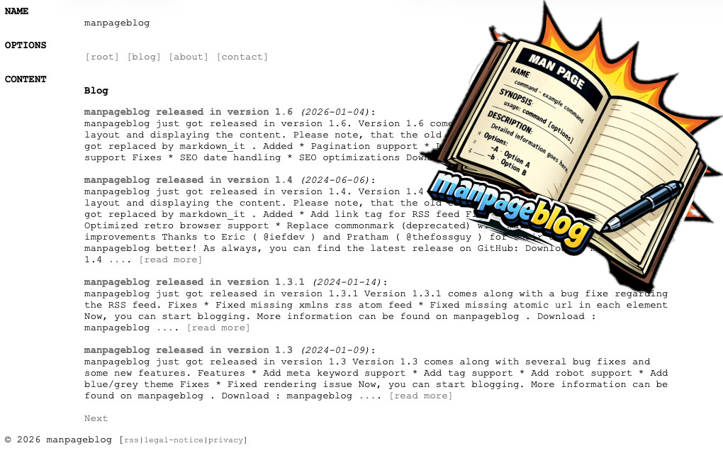 The project source is available on GitHub at: https://github.com/gyptazy/manpageblog