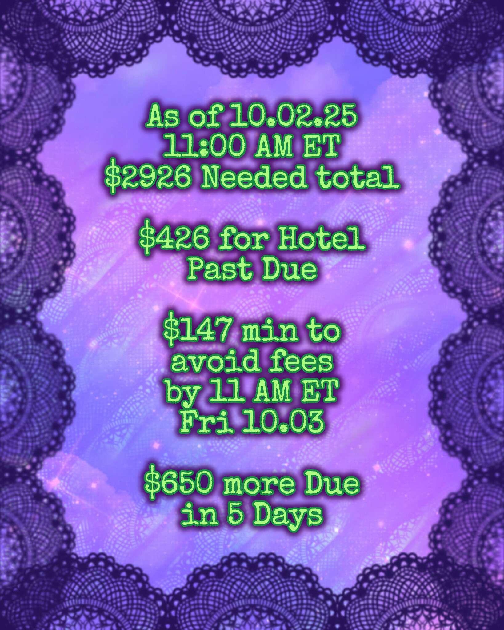 Less than three hrs before more late fees pile up for our past due Hotel