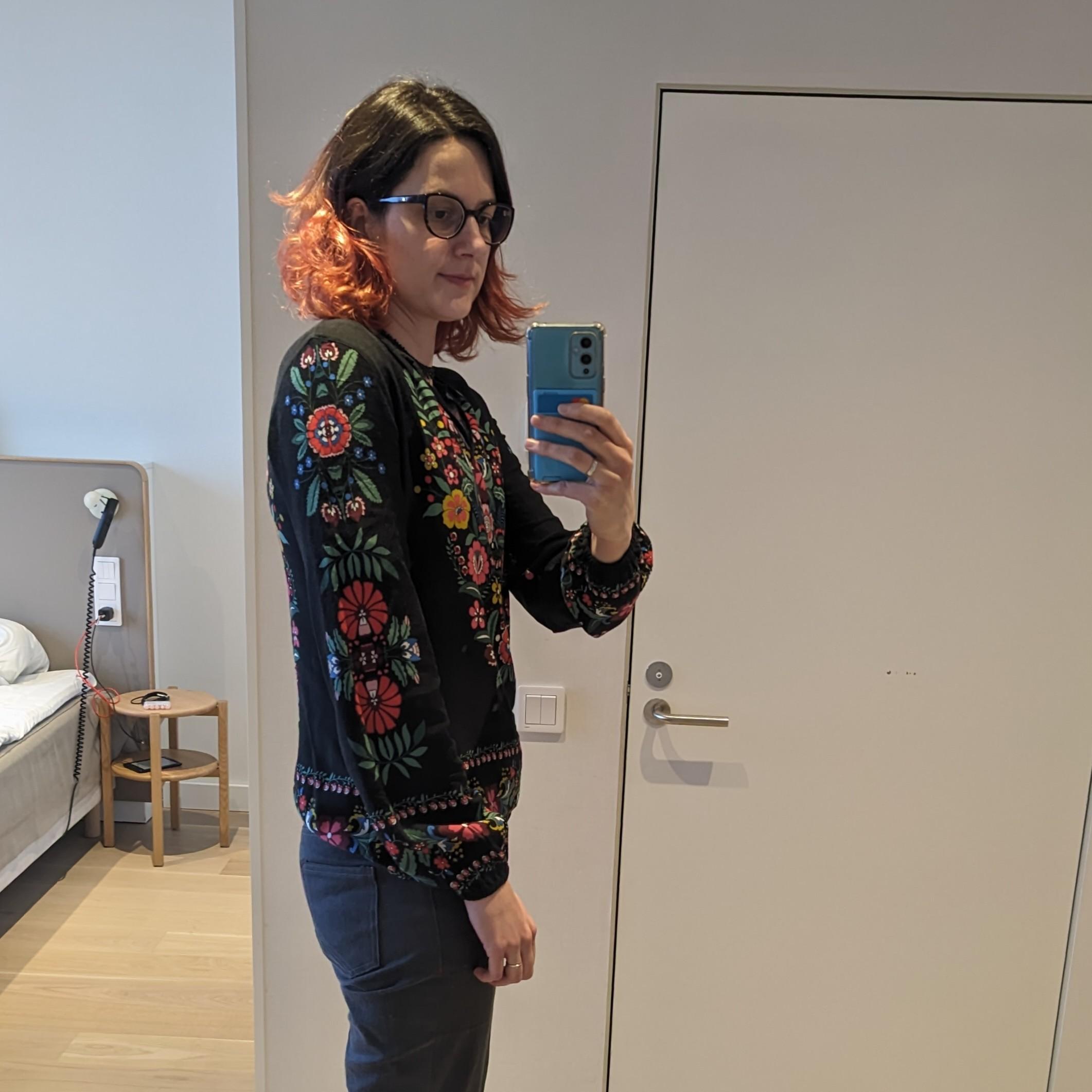 <p>First day of <a href="/tags/scanagile26/" rel="tag">#scanagile26</a>! Here are some hotel selfies of a blouse I sewed recently and am wearing today. Have been hoarding this fabric for a long time until I finally sewed it up. The pattern is loosely based on the Wiksten Tova tunic, which sadly is no longer available. Same pants as yesterday 😲.<br>I also made my bracelet!<br><a href="/tags/sewing/" rel="tag">#sewing</a> <a href="/tags/diy/" rel="tag">#diy</a></p>