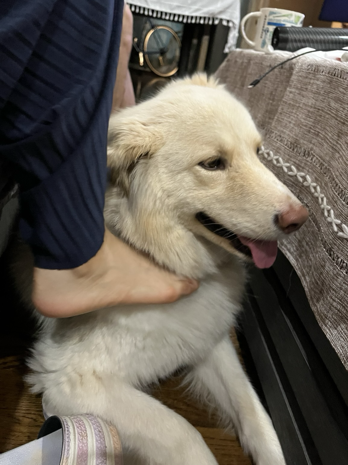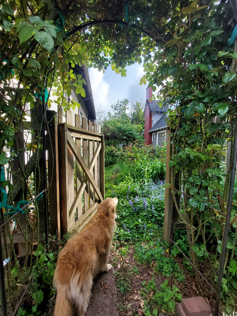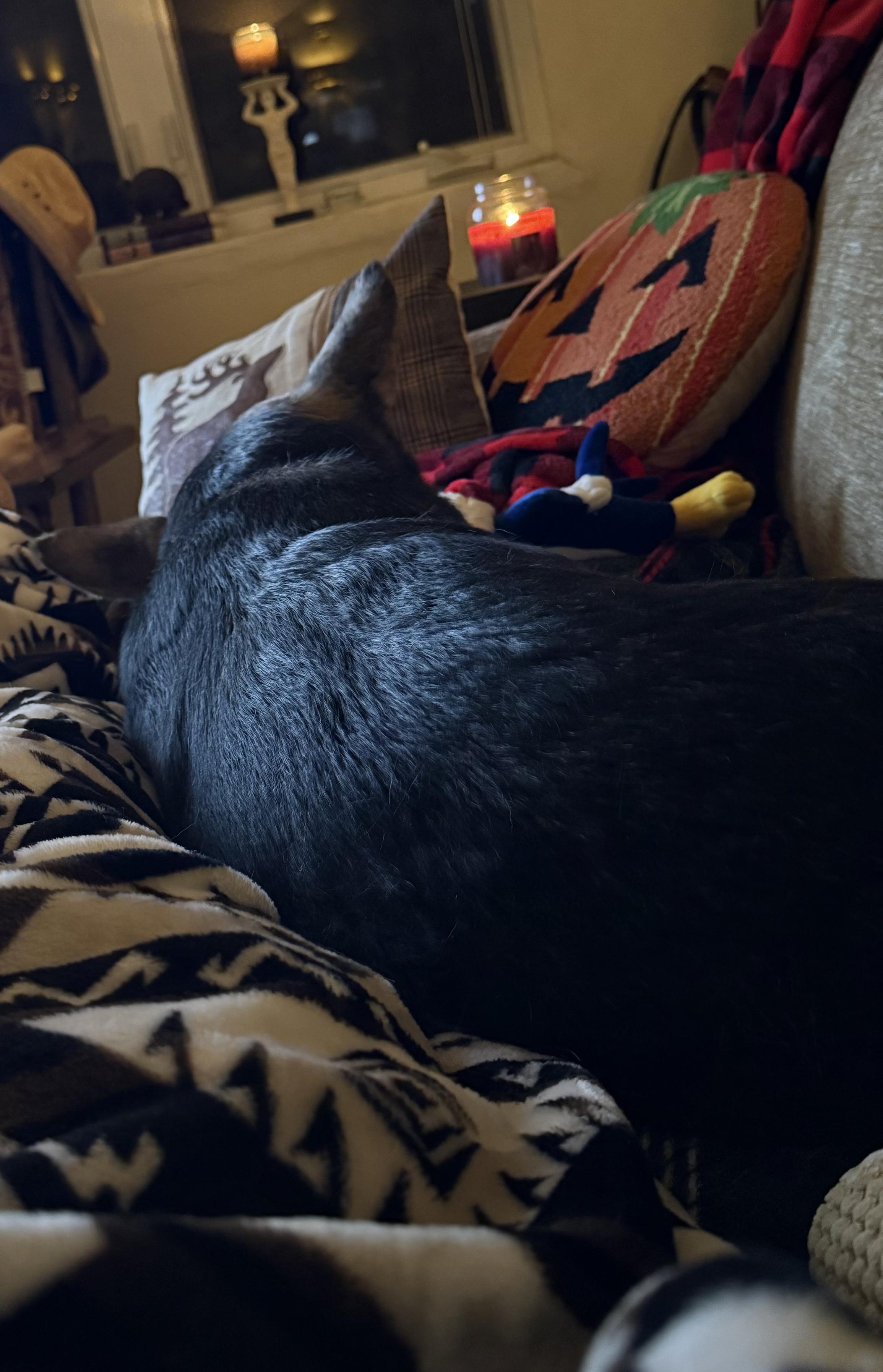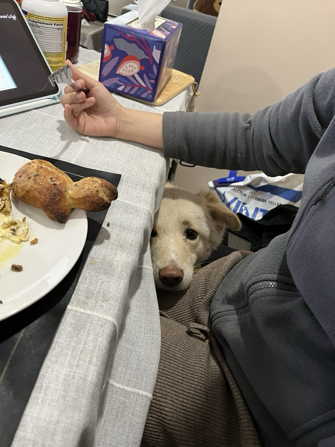 In my happy, slightly spooky place. This dog is so skittish, it warms my heart whenever I can get her to settle in. I’m trying my best not to move and ruin it.