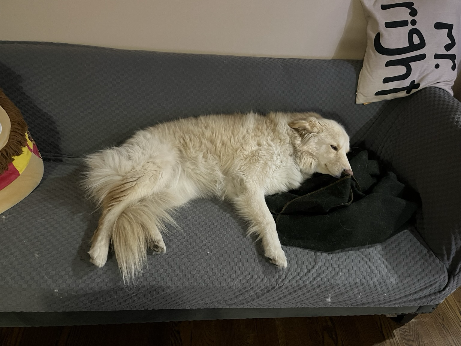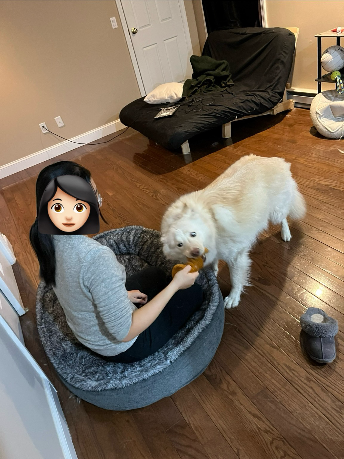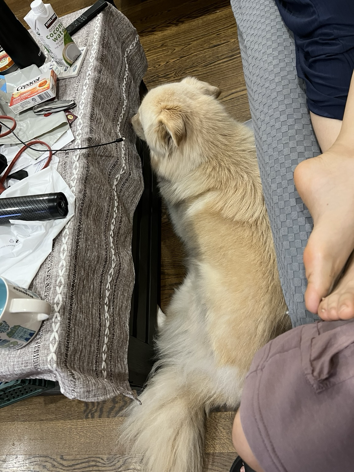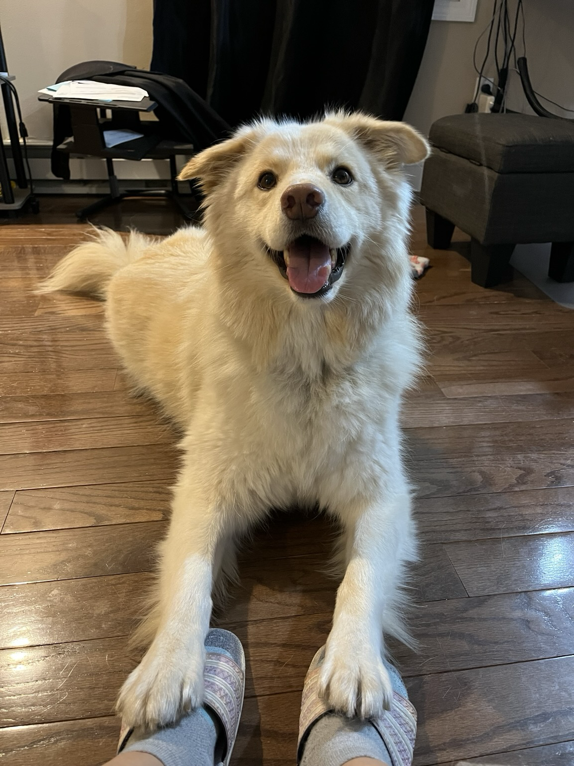 In my happy, slightly spooky place. This dog is so skittish, it warms my heart whenever I can get her to settle in. I’m trying my best not to move and ruin it.