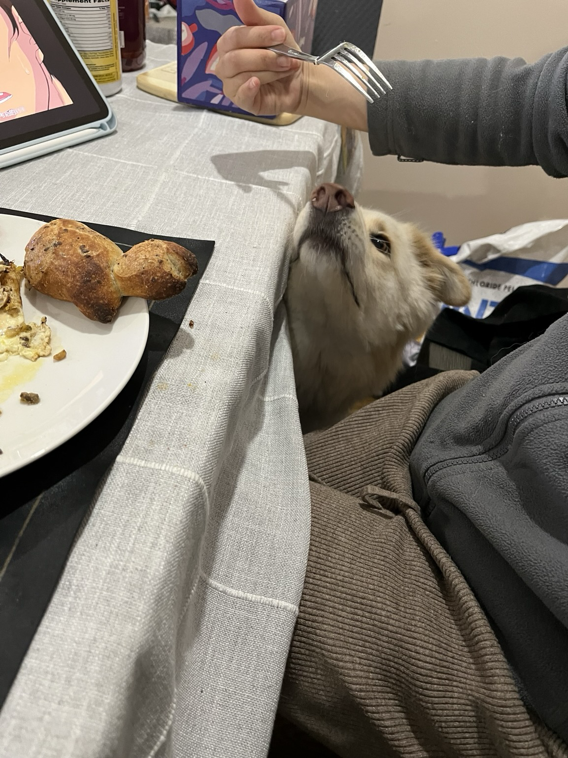 Eventually, mom could not resist #今日Saffron and gave her some bread