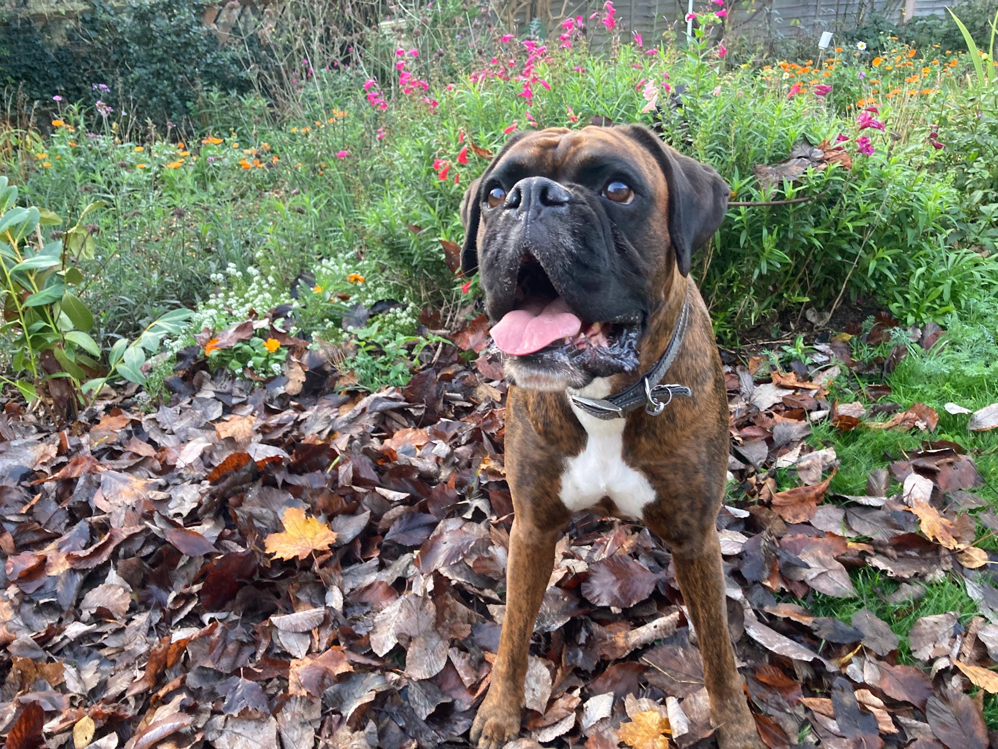 He’s even happier now he has his own pile of leaves to play with. #DogsOfMastodon