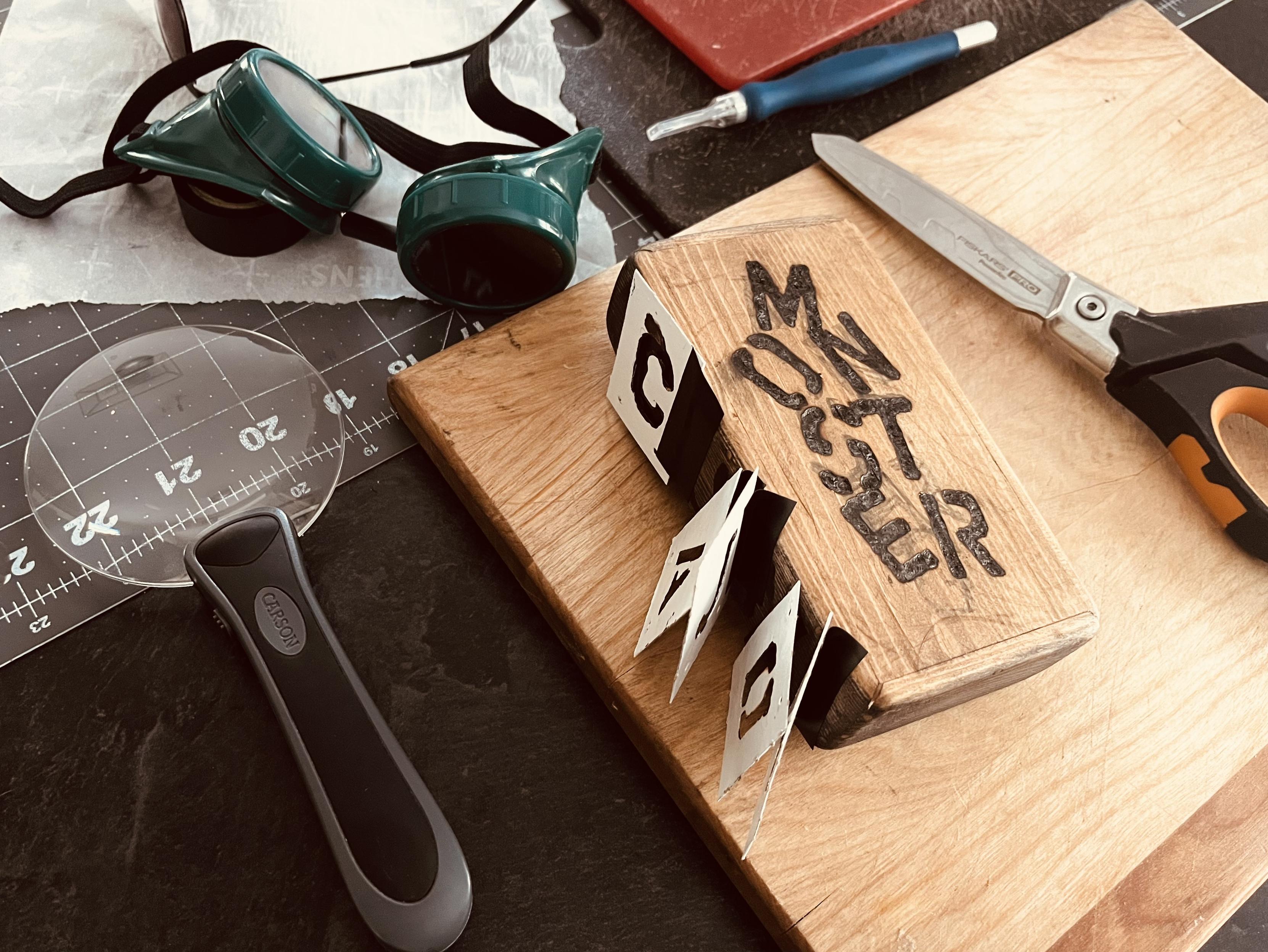 Handmade from 1/4" pine, bamboo mini-skewers & wood glue.