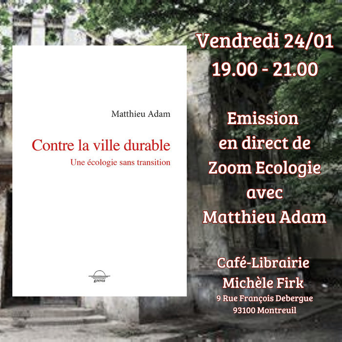 Émission en direct de @zoomecologie autour du livre "Contre la Ville Durable" (@editionsgrevis) avec son auteur @MatthieuAdam